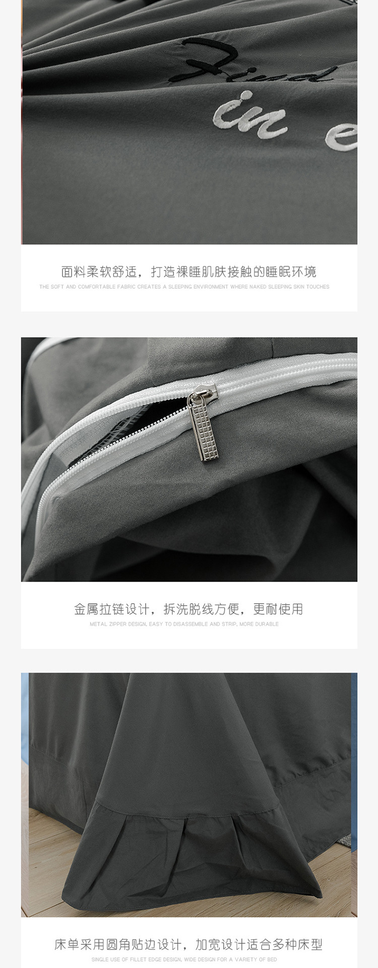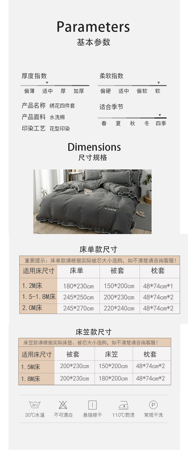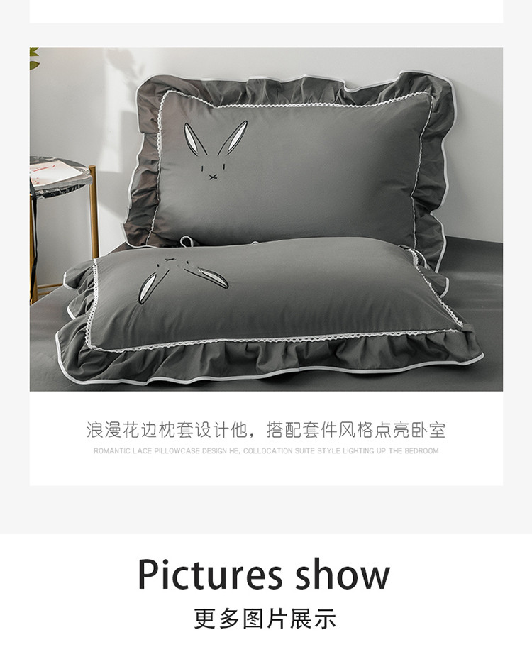 商品名称:ab家纺 2020新款兔耳朵绣花水洗棉四件套 深灰