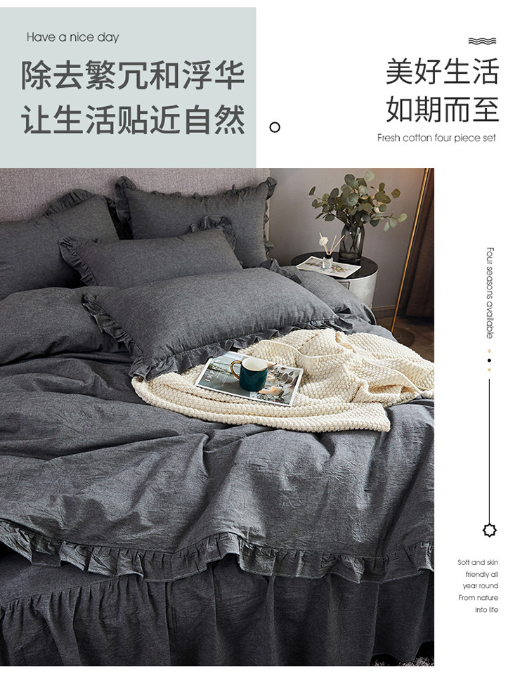 当前位置: 91家纺网 > 商品网购 > 床品套件 > 四件套 > 水洗棉四件套 > 十个点家纺 2020新款单层四件套 深灰