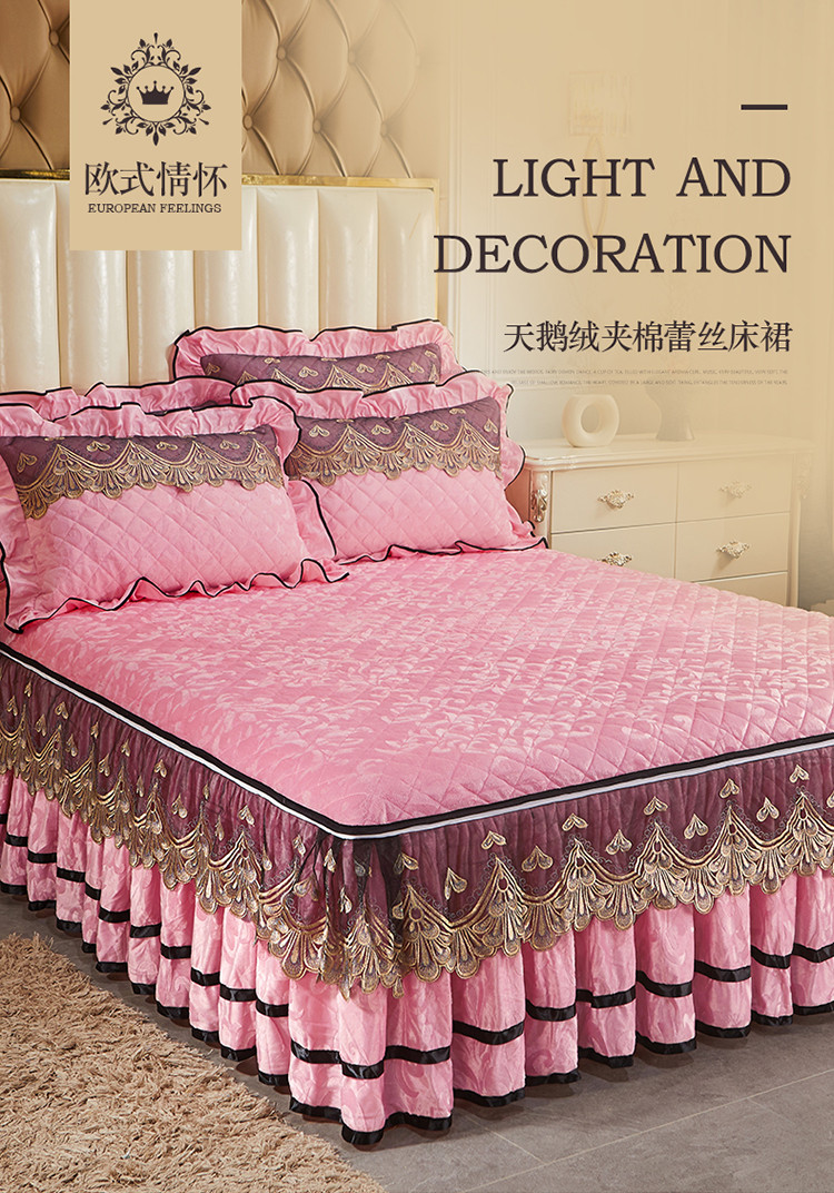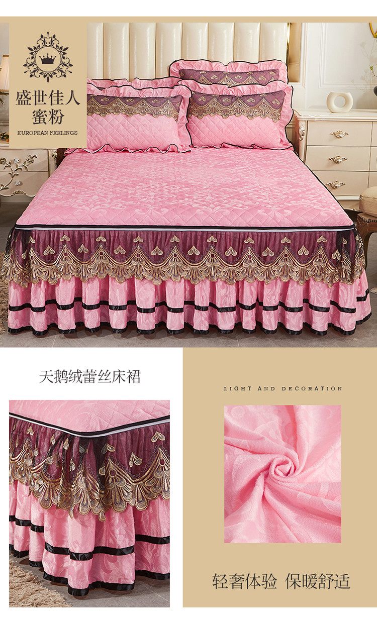 商品名称:网红馆 2025新款天鹅绒盛世佳人单品蕾丝床裙 蜜粉
