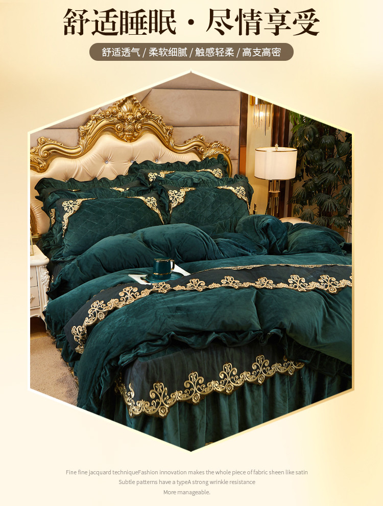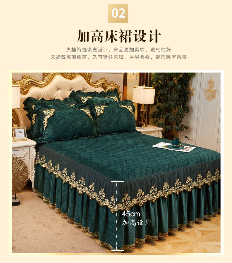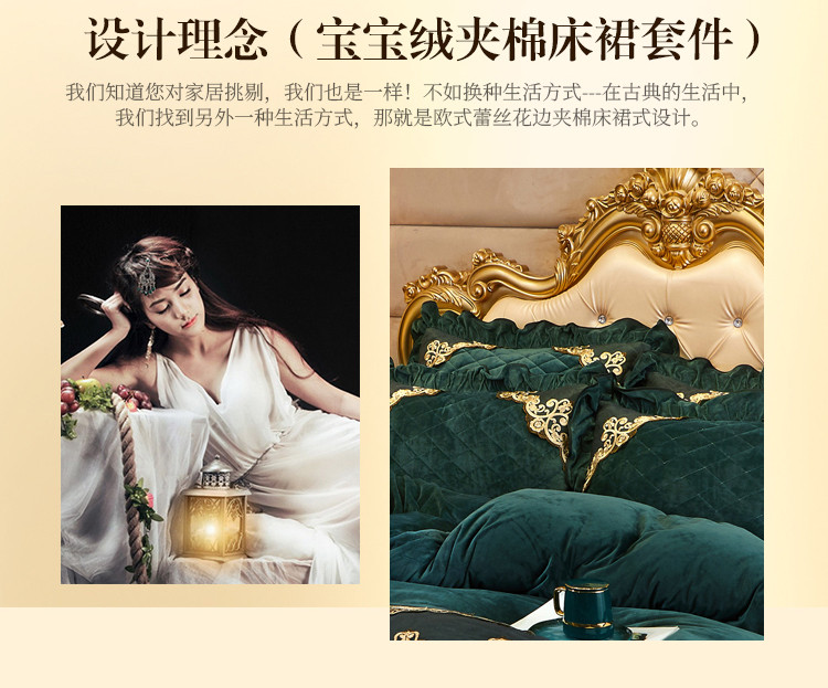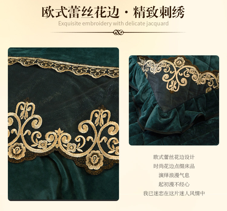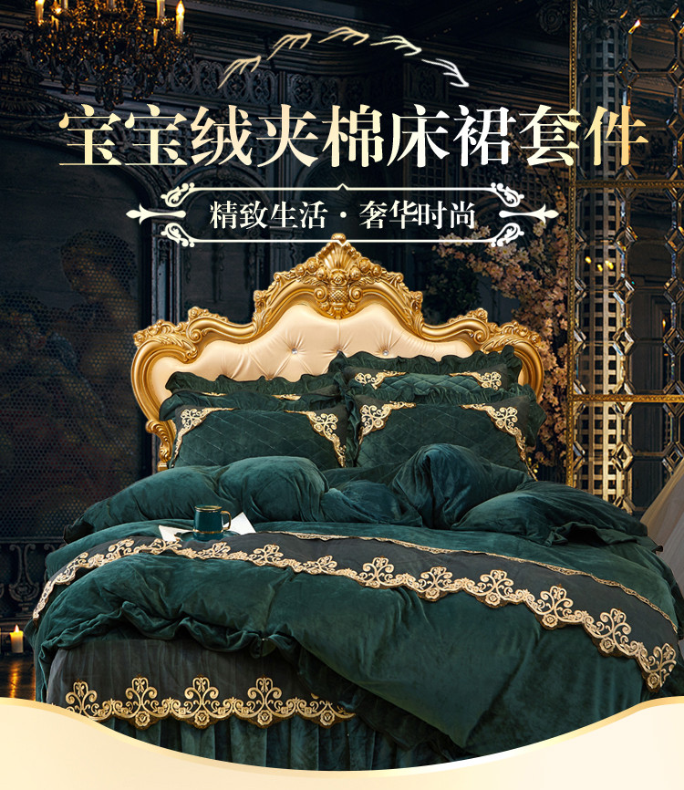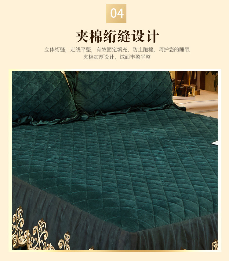 商品名称:星尚2020宝宝绒夹棉床裙款四件套水晶绒法莱绒婴儿绒 墨绿
