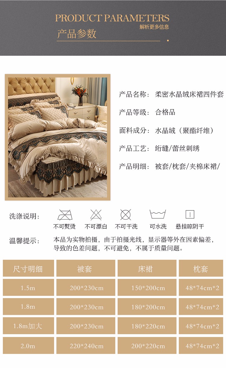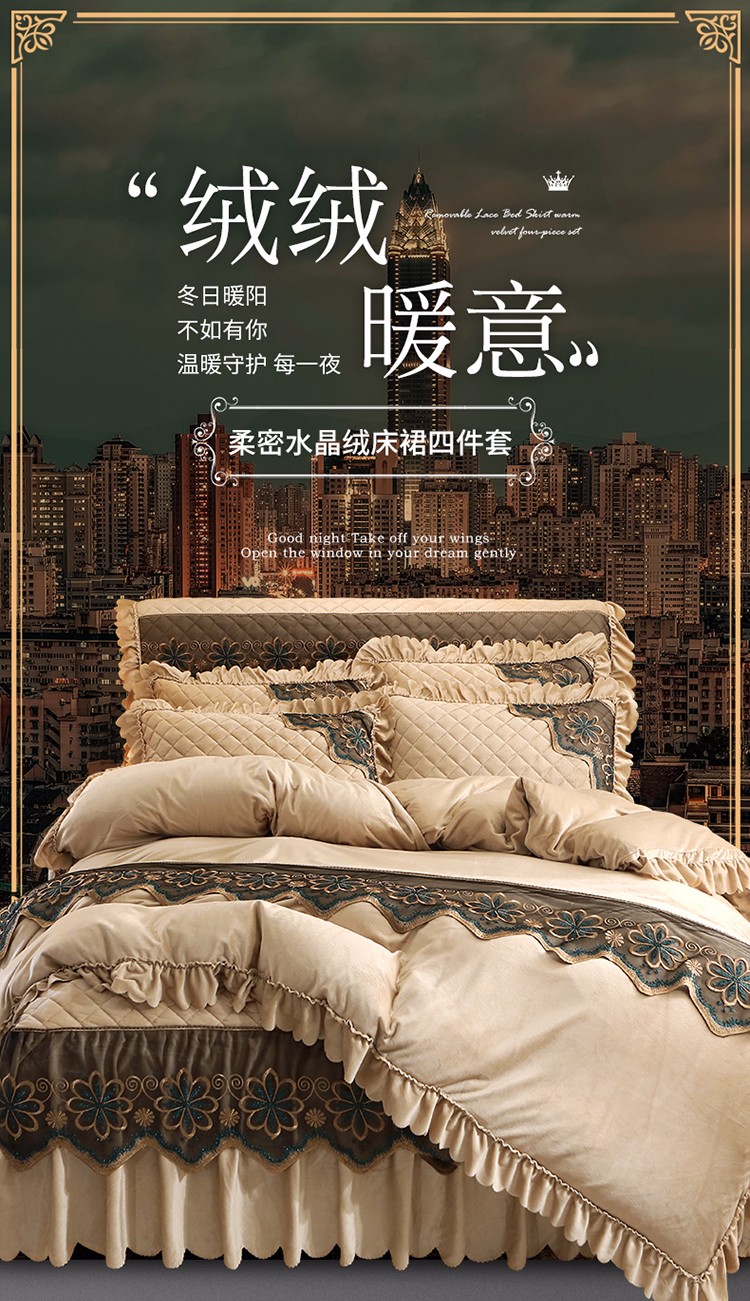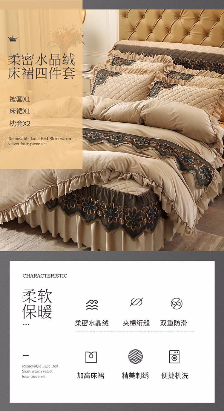 商品名称:情恒 2025新款水晶绒皇家豪庭系列四件套 香槟色