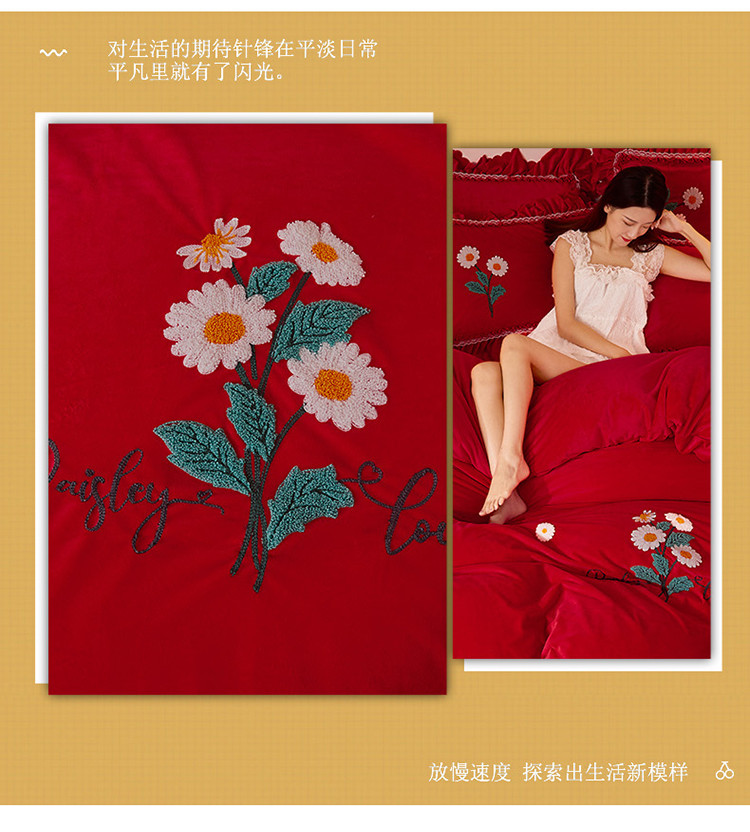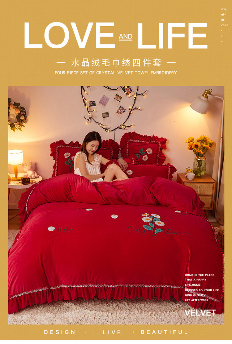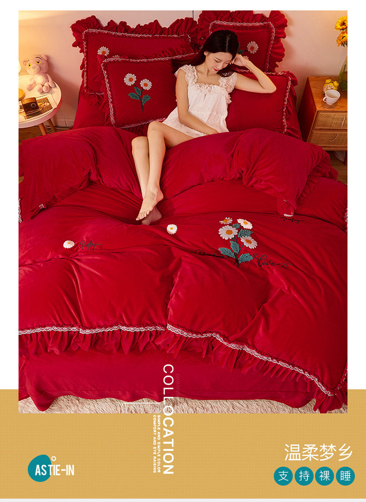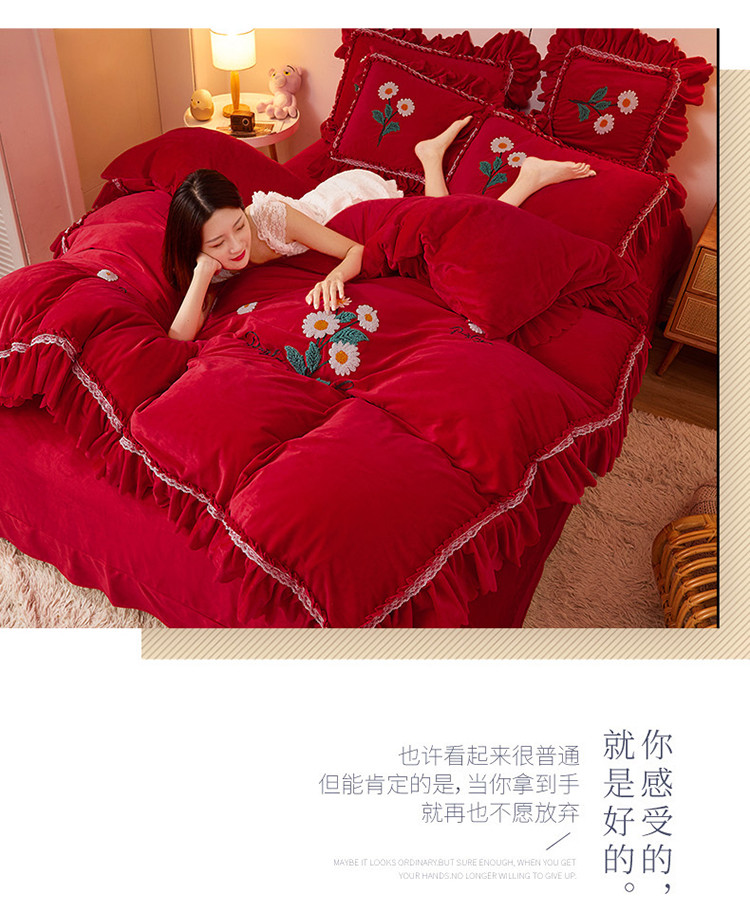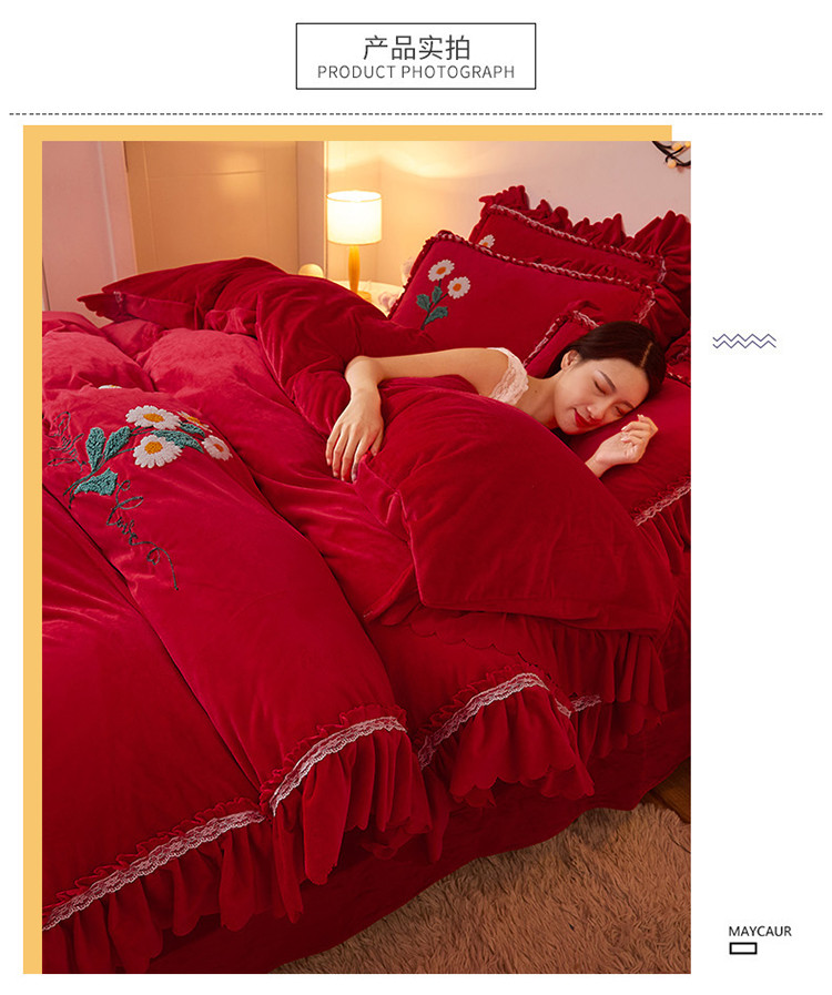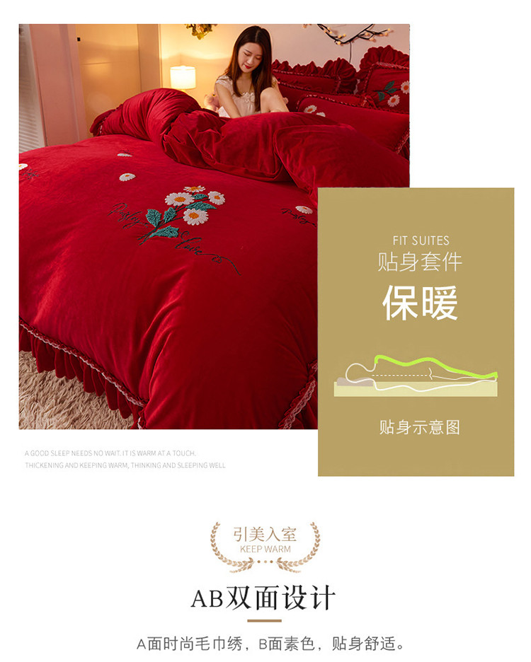 铠畅2021新款水晶绒床裙款四件套梦幻系列 梦幻酒红