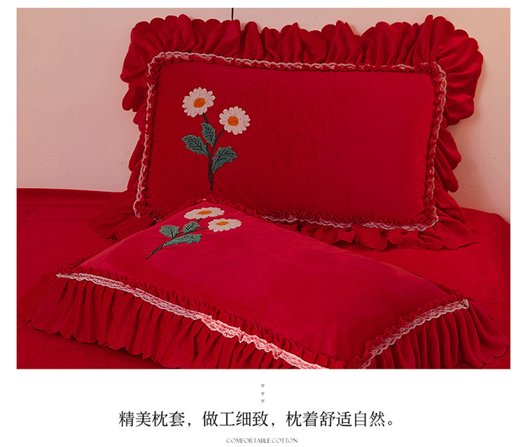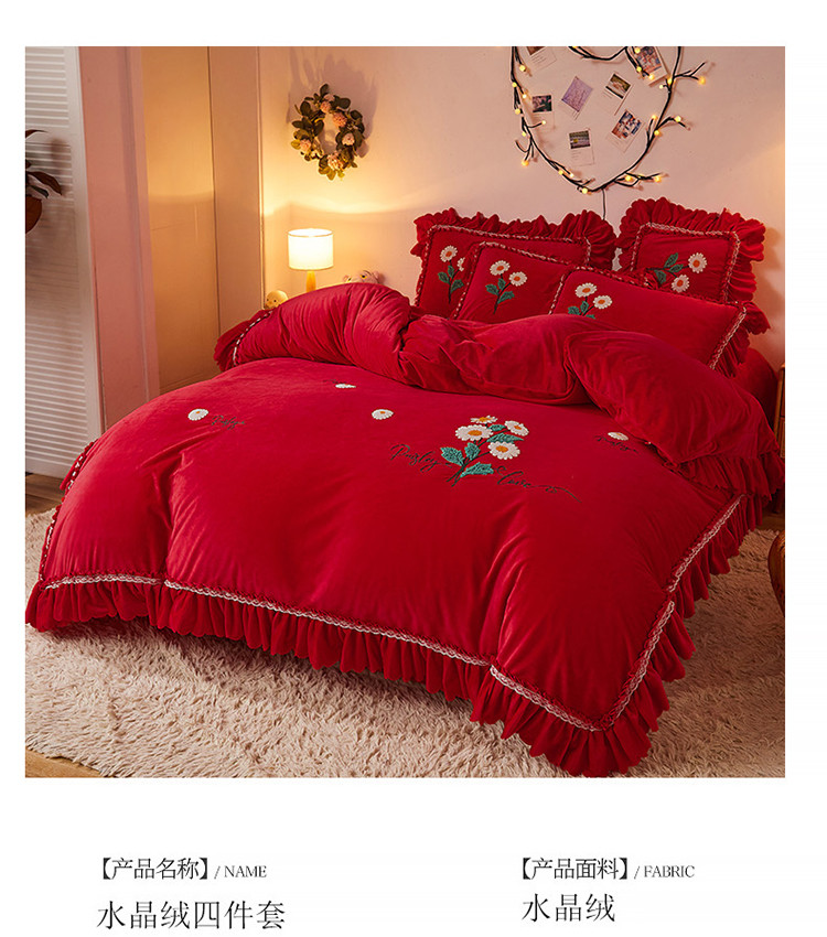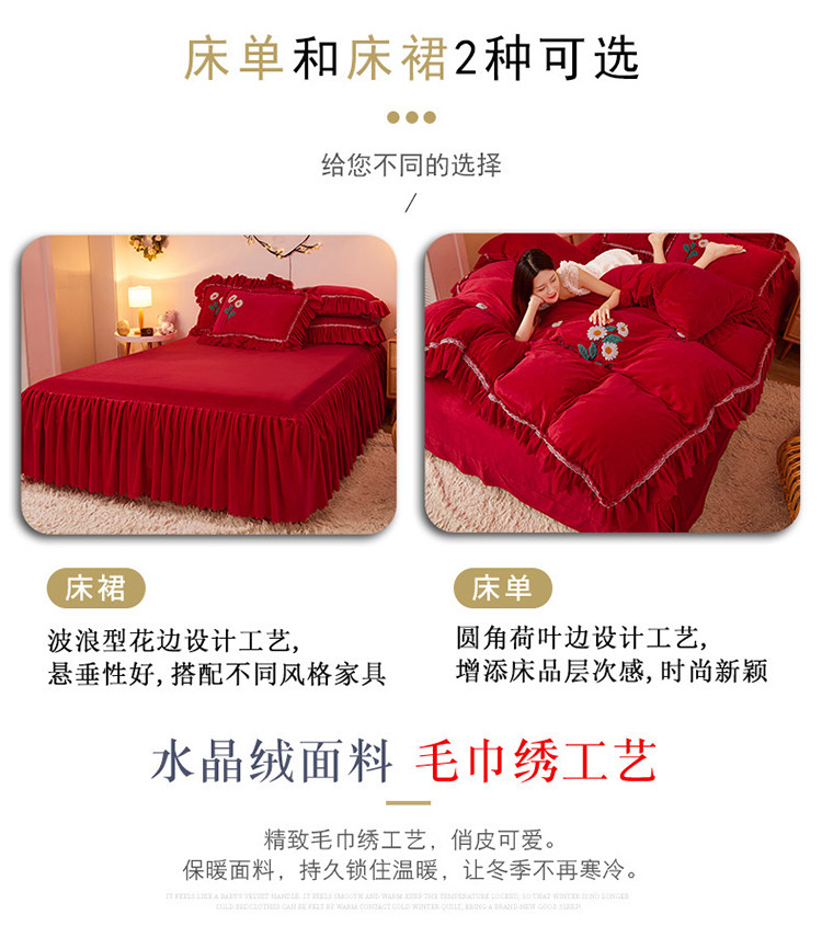 商品名称:铠畅2021新款水晶绒床裙款四件套梦幻系列 梦幻酒红