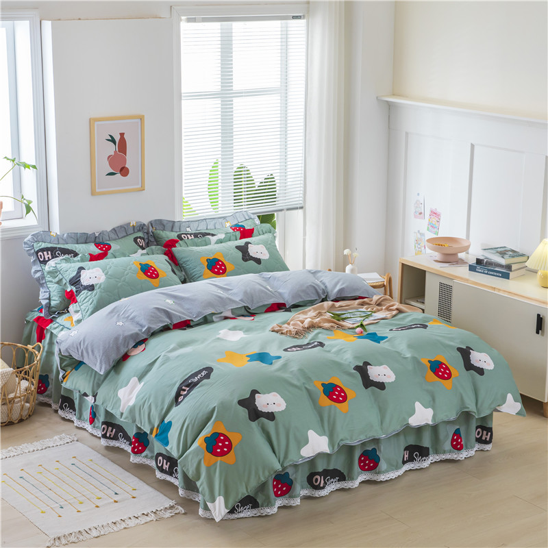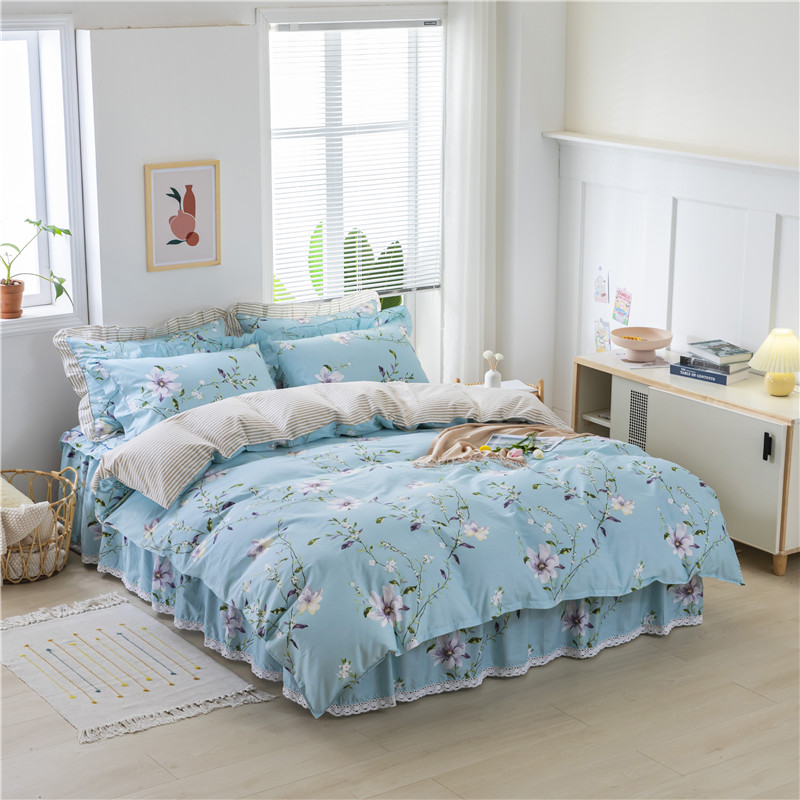 (总)纽缦 2021新款上下边夹棉床裙四件套