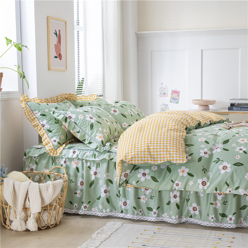 纽缦 2021新款上下边夹棉床裙四件套 可可佳人绿