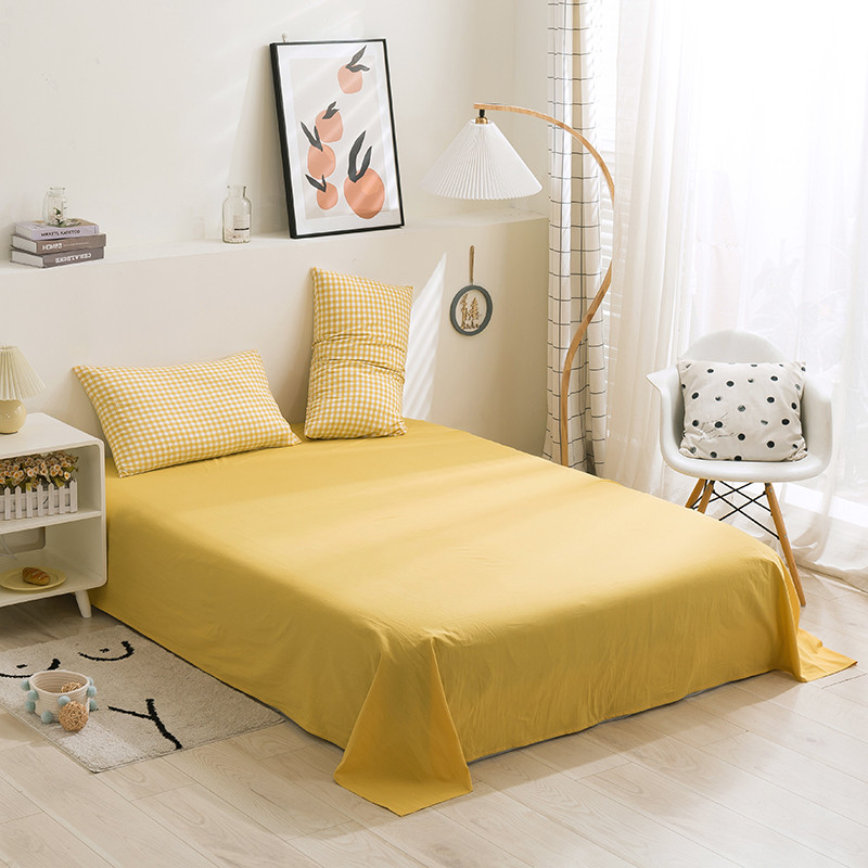 简色坊 2023新款全棉水洗棉单品床单 黄小格