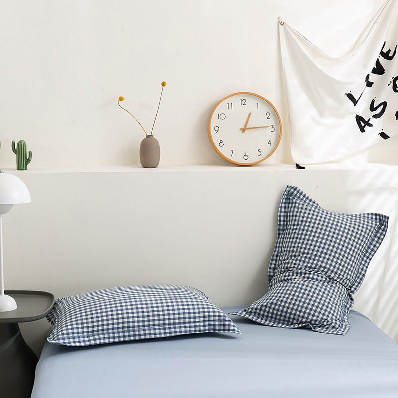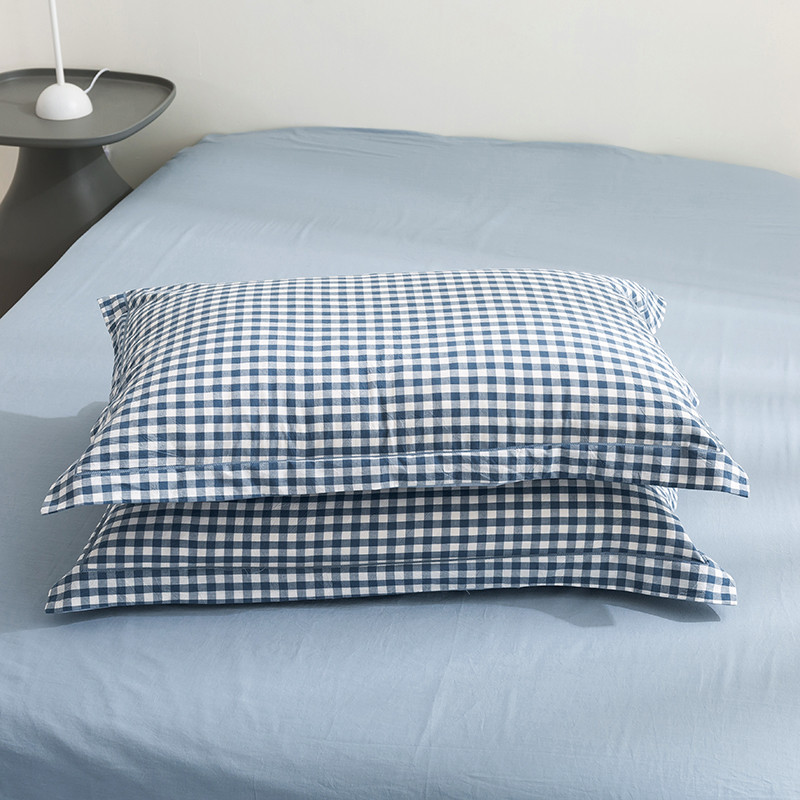 简色坊 2023新款全棉水洗棉单品枕套一只 蓝小格