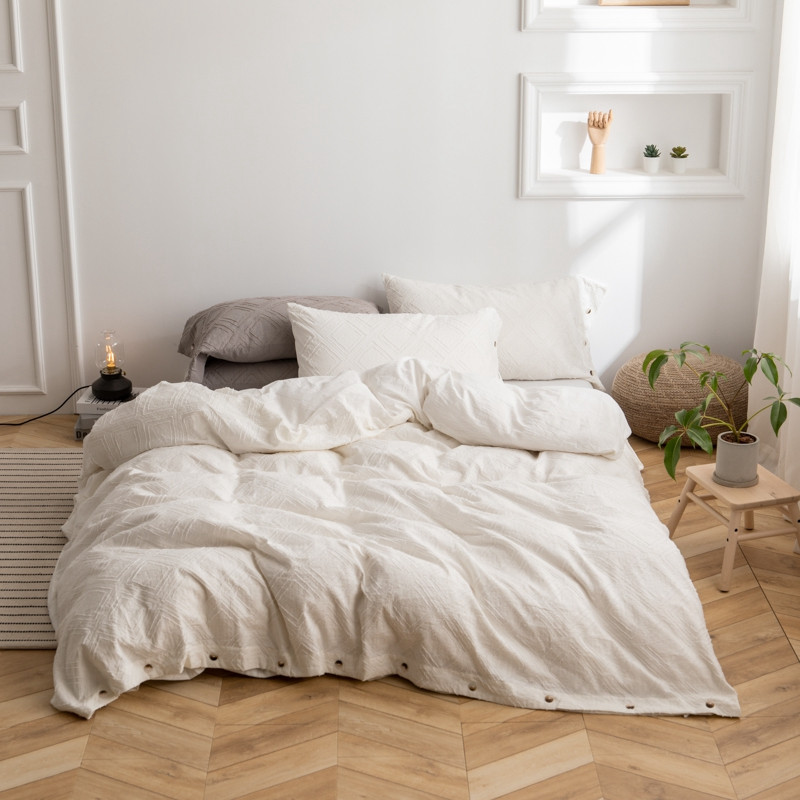 (总)简家居 2025新款亲肤舒适棉麻床盖三件套,棉麻提花