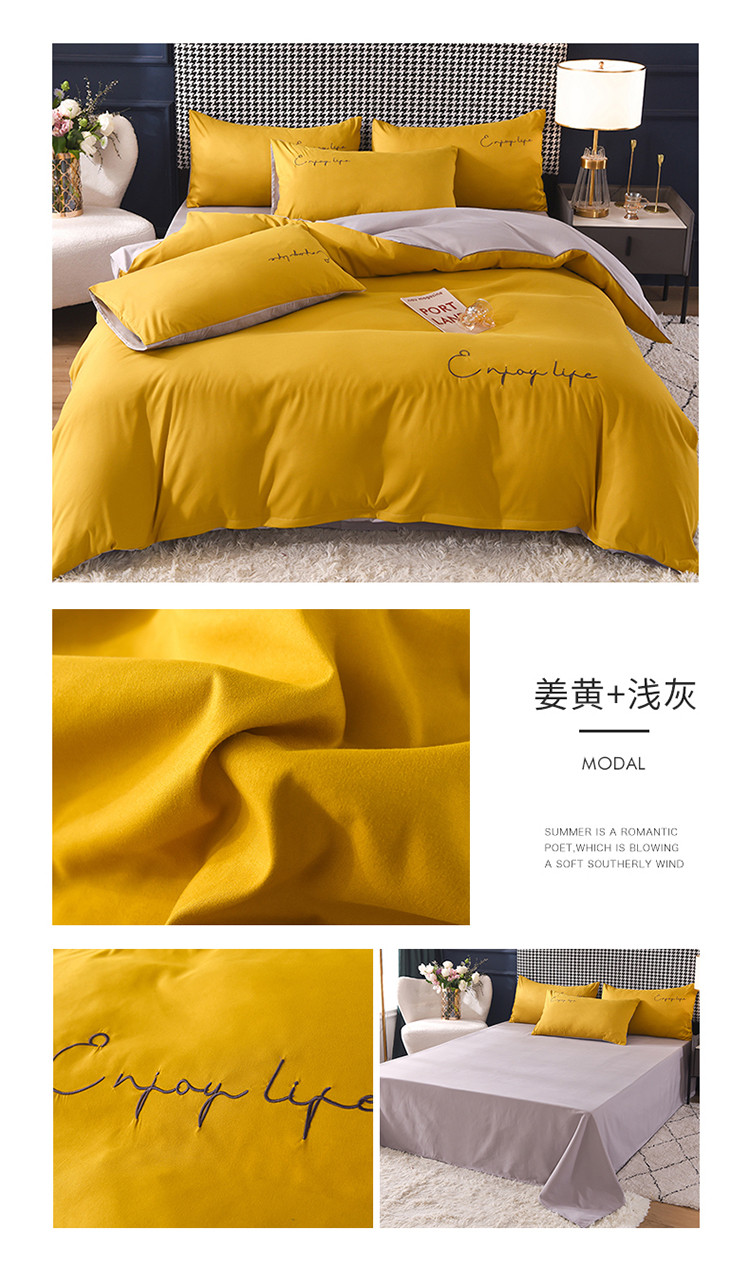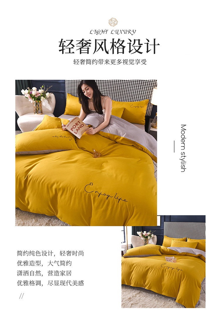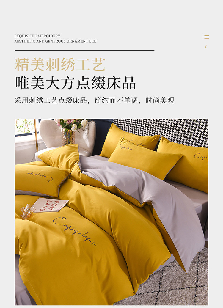 大米家居2023新款轻奢刺绣水洗棉四件套 星耀系列姜黄+浅灰