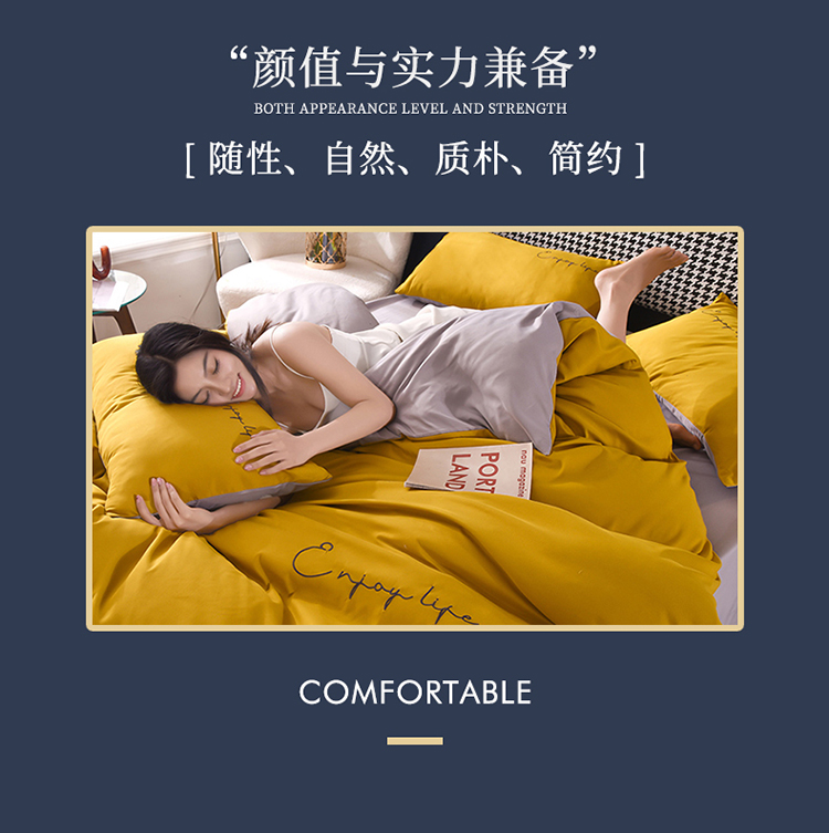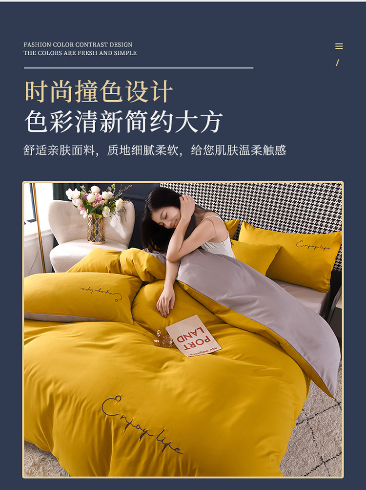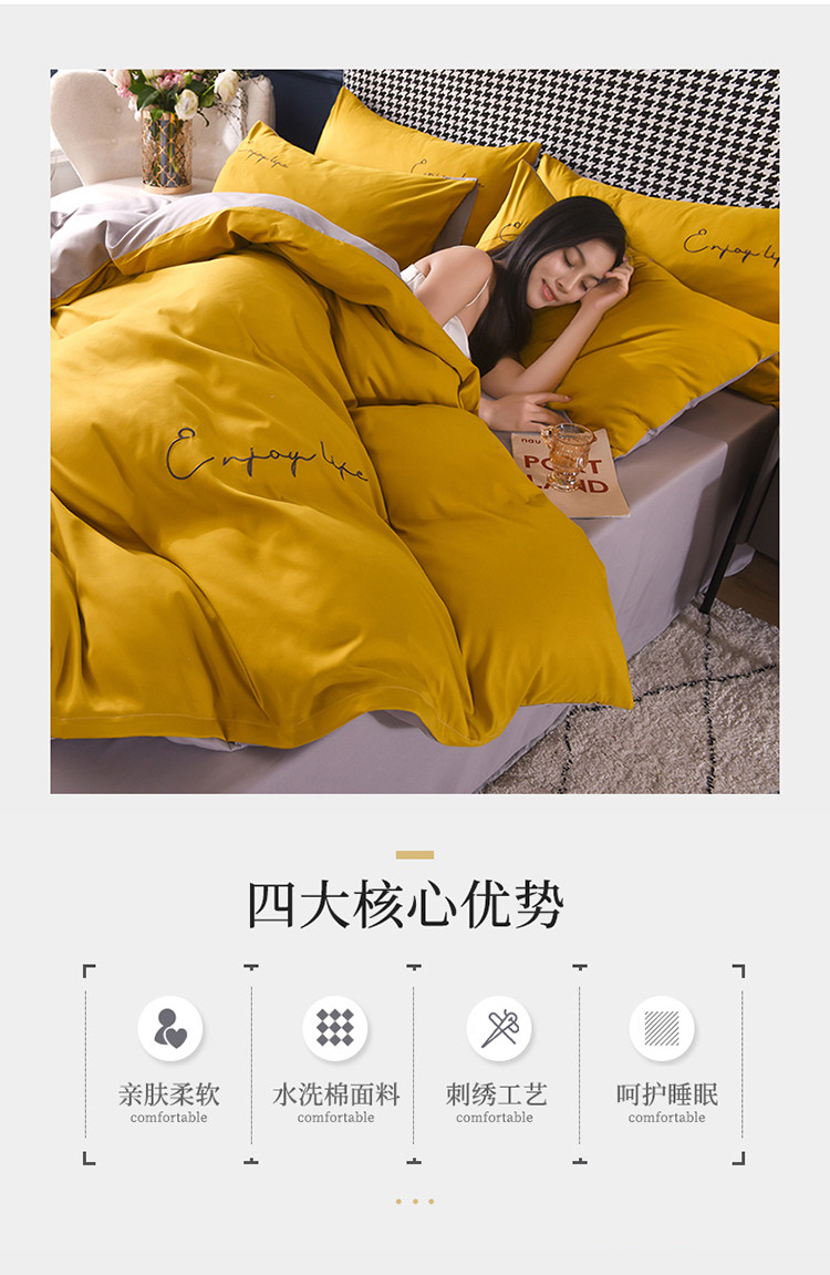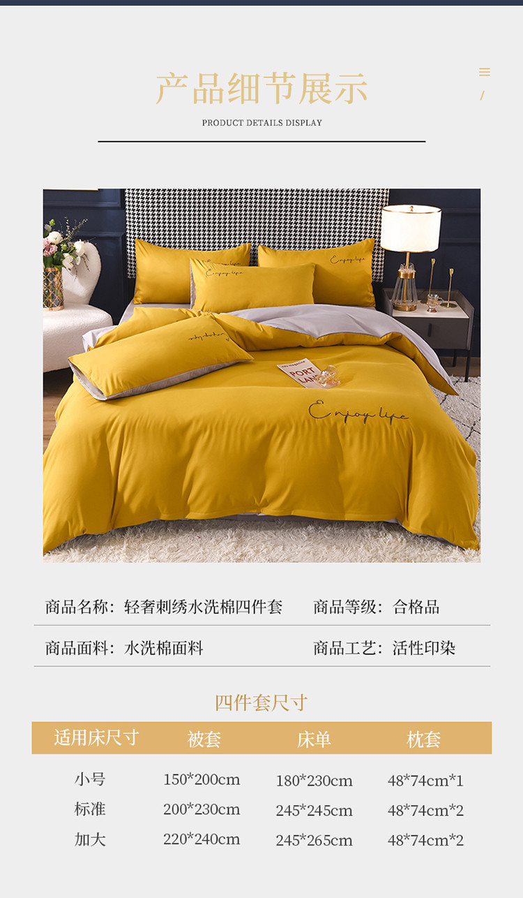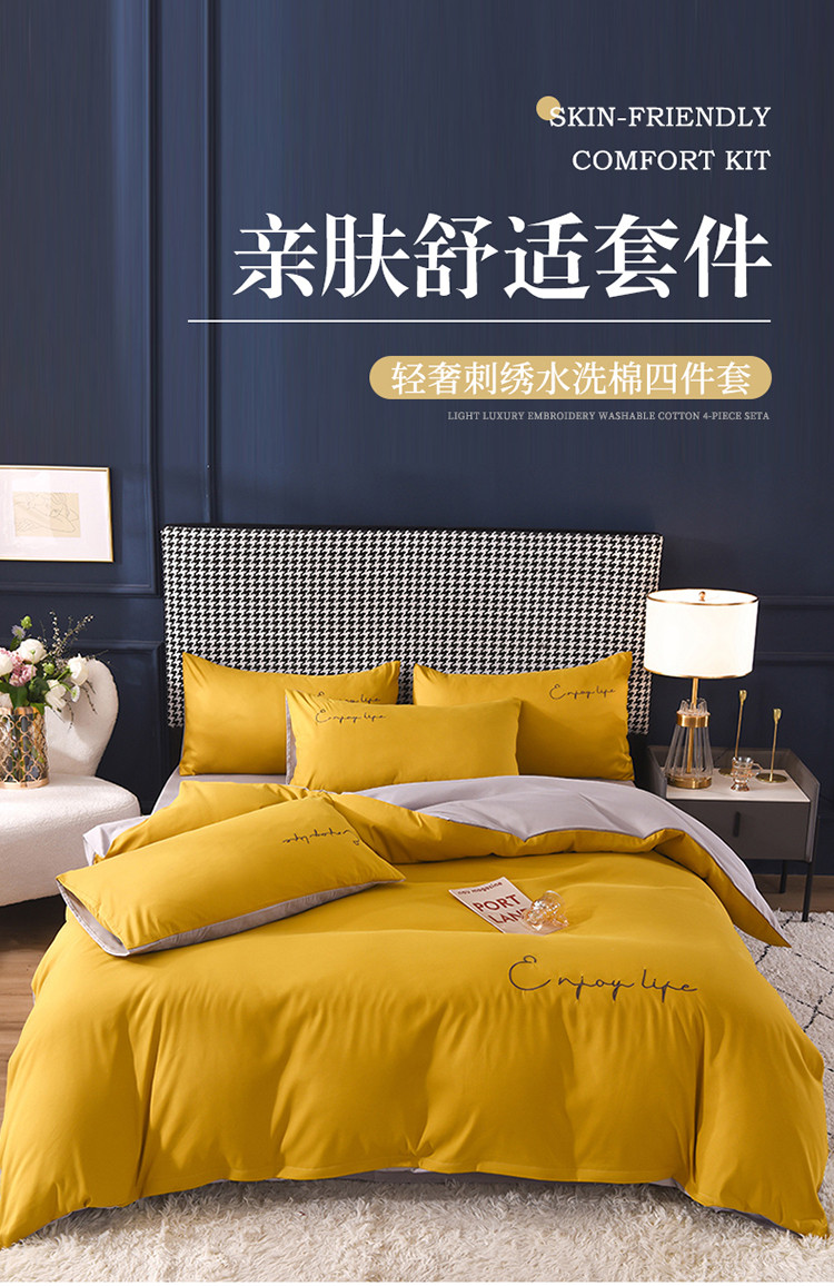 商品名称:大米家居2023新款轻奢刺绣水洗棉四件套 星耀系列姜黄+浅灰