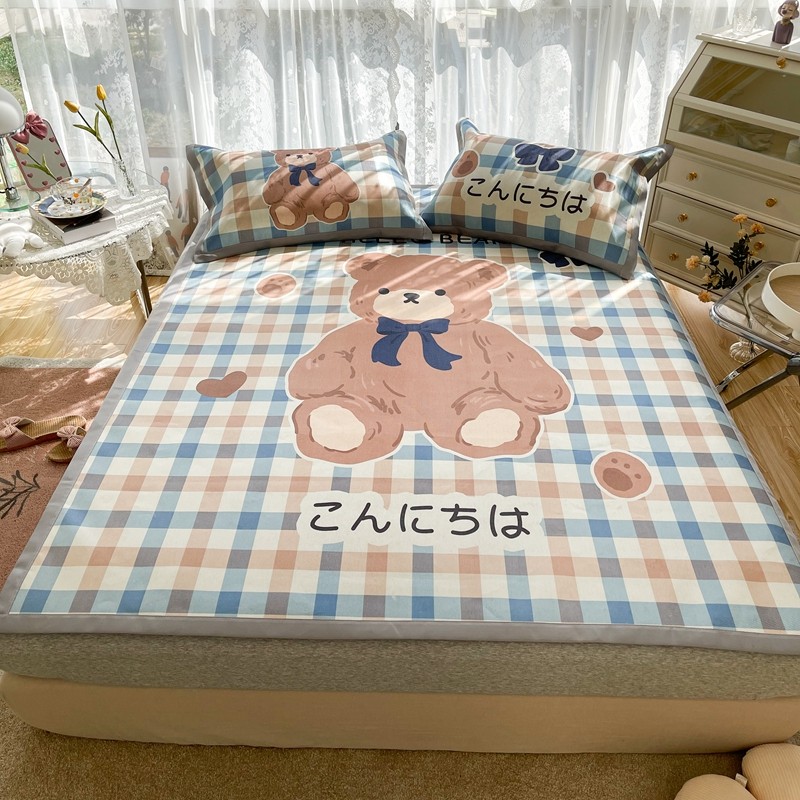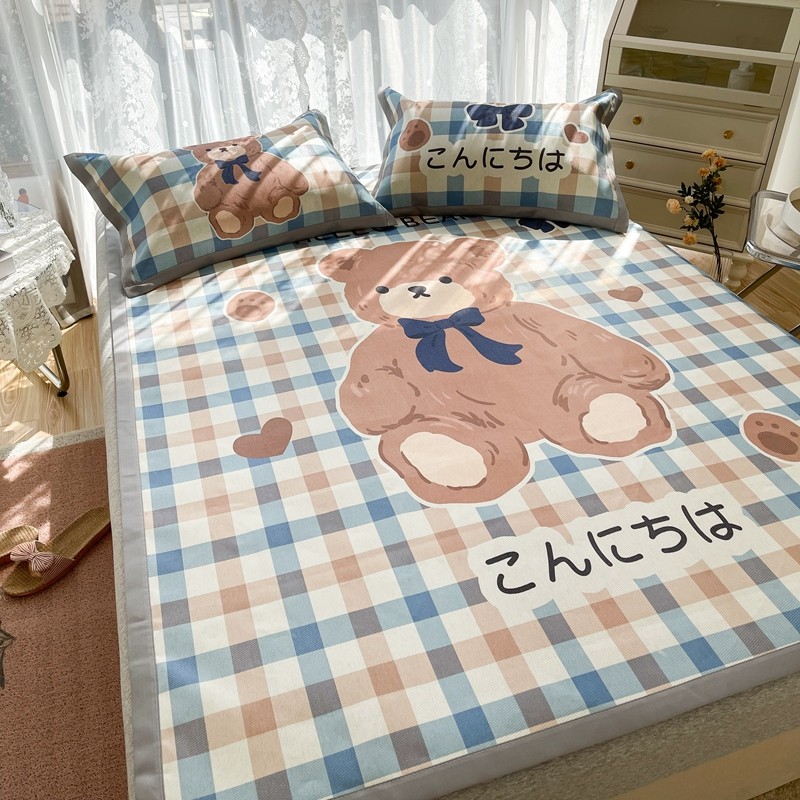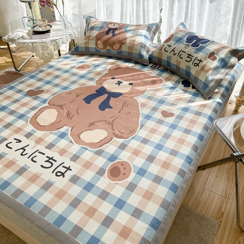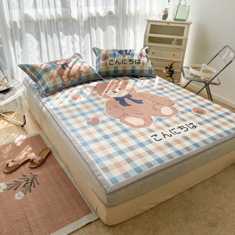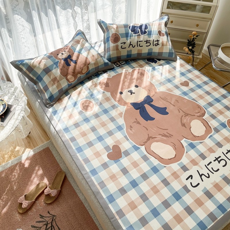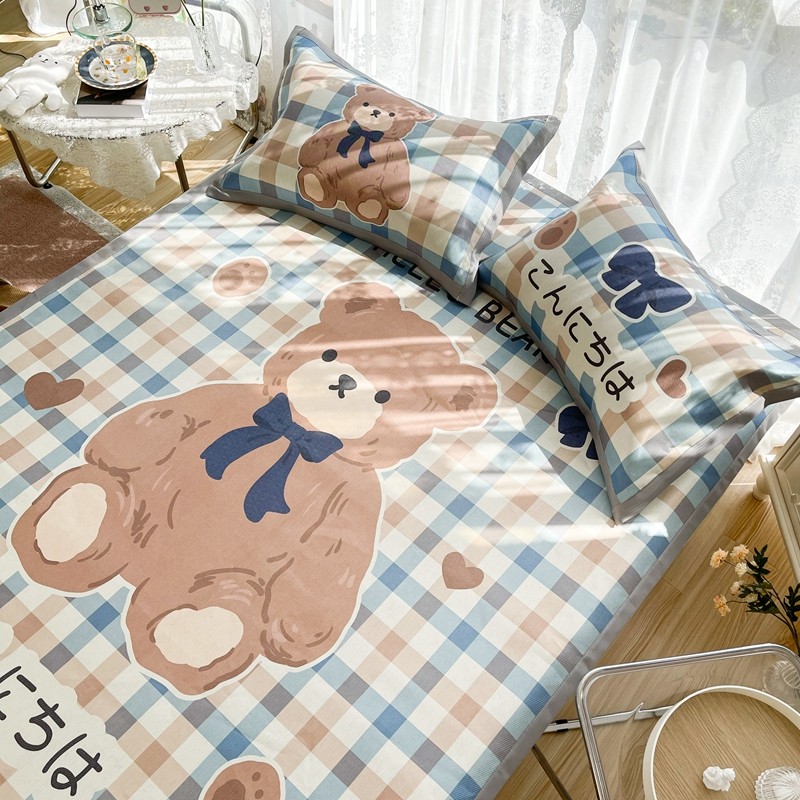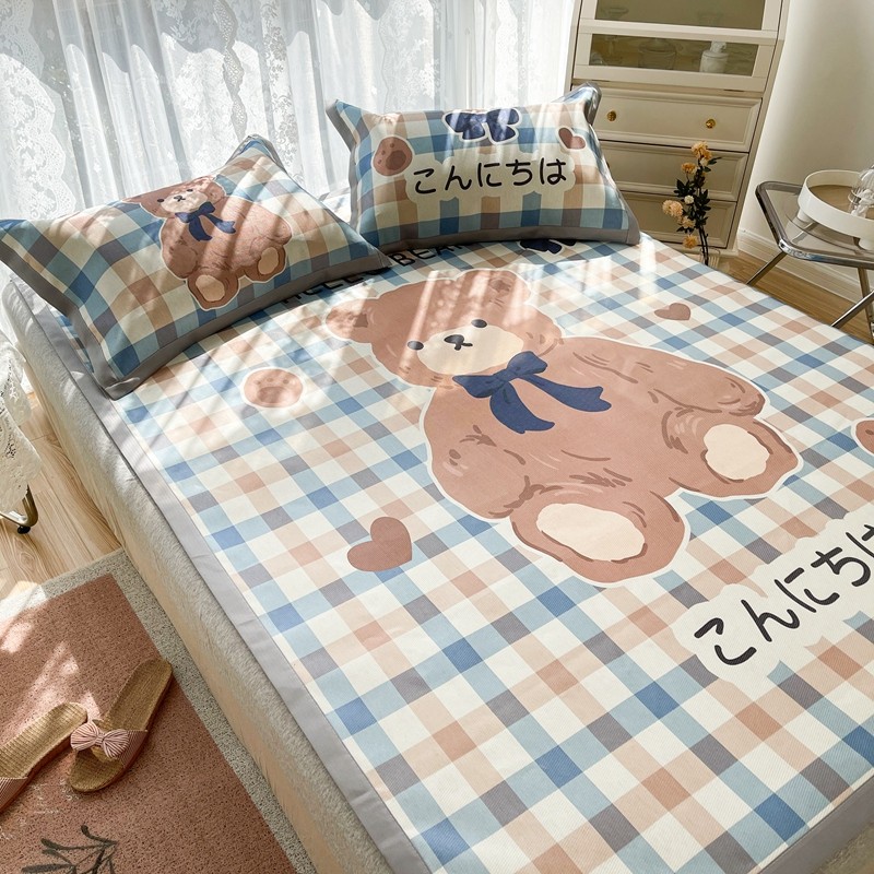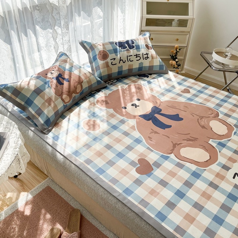 慕尚 2025新款卡通宽边大版冰丝席 格子小熊