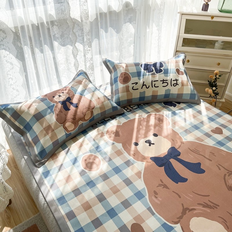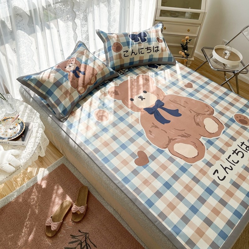商品名称:慕尚 2025新款卡通宽边大版冰丝席 格子小熊