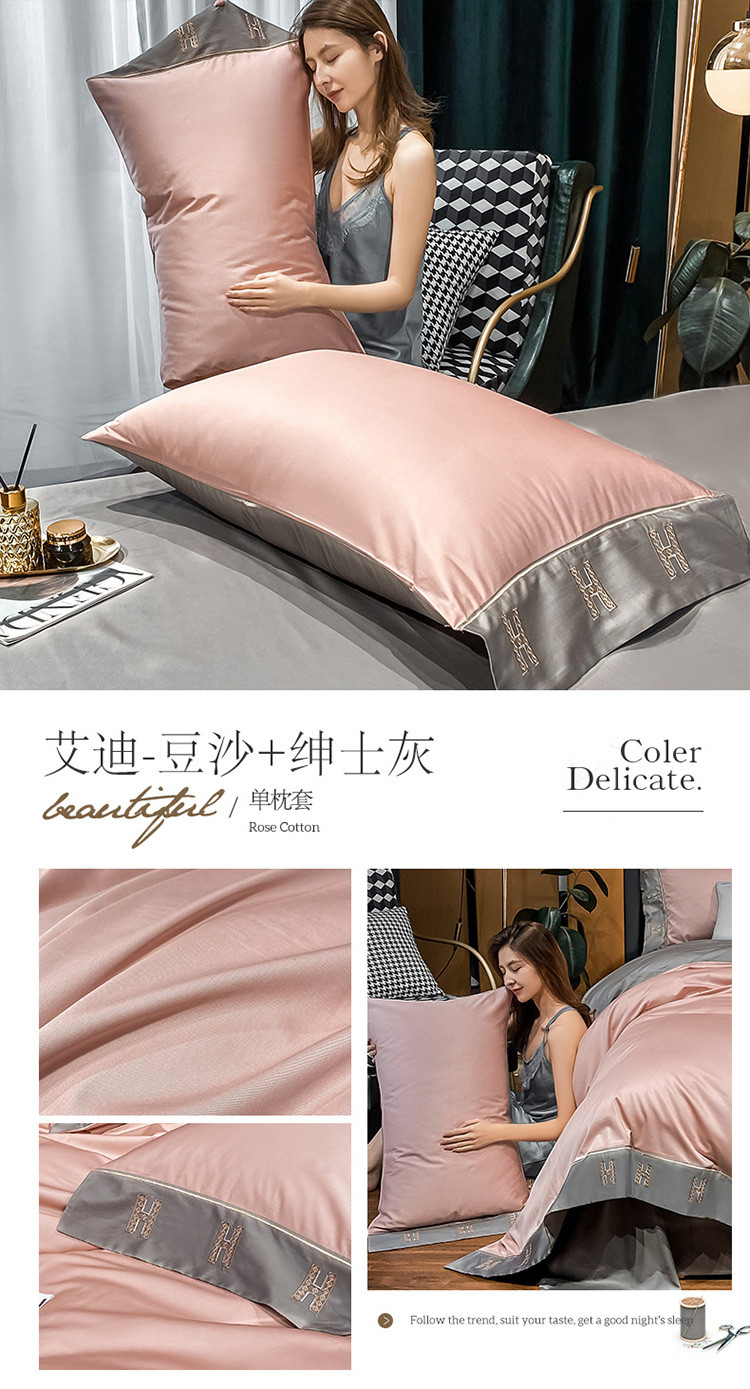 • 91家纺网 家纺一手货源 找家纺 蓝米卡夫 2021新款艾迪&卡夫单枕套 艾迪-豆沙+绅士灰