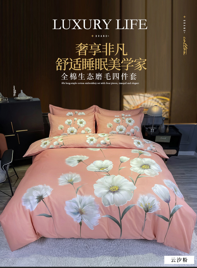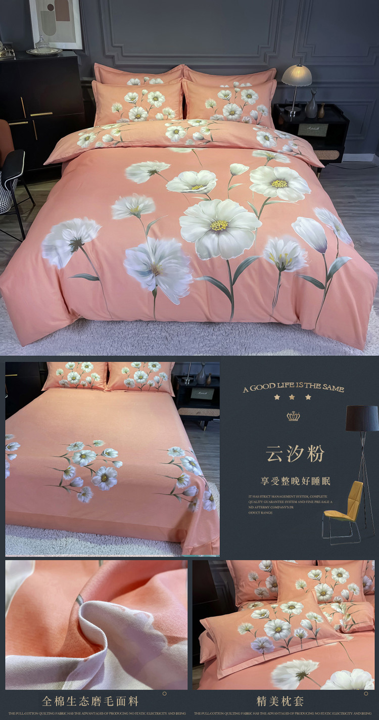 金爱家 2021新款大版磨毛花卉系列四件套 云汐粉
