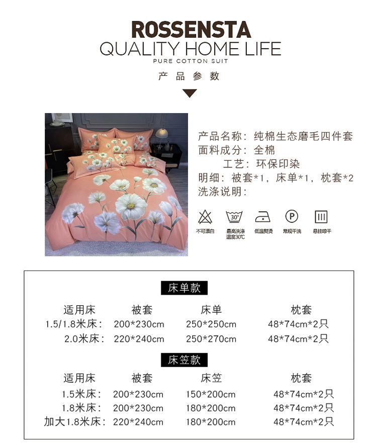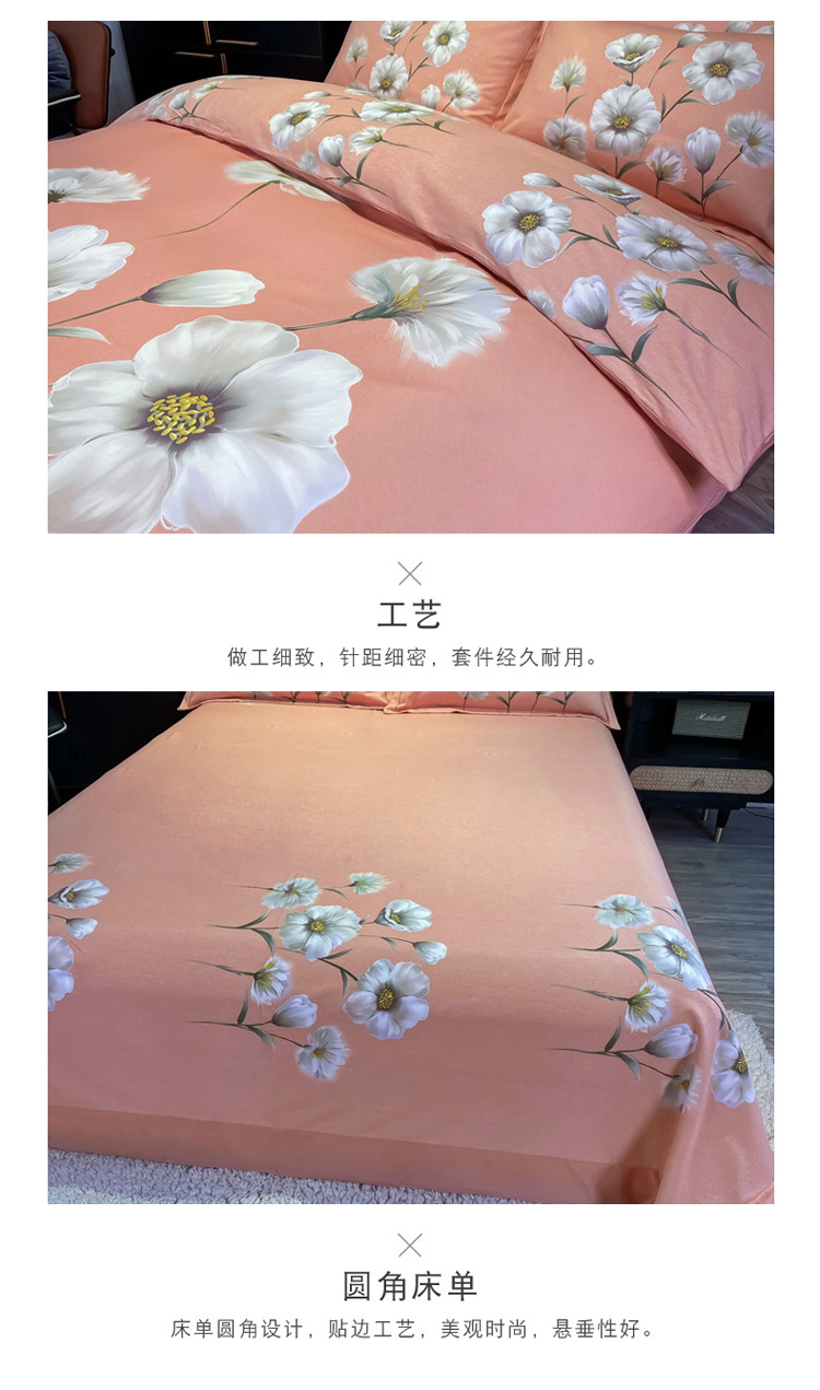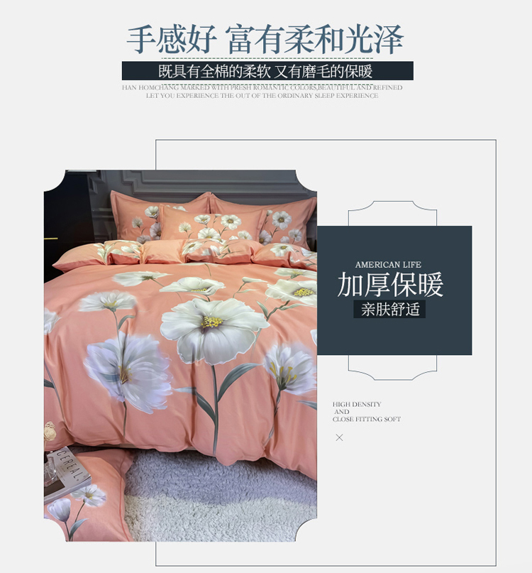 商品名称:金爱家 2021新款大版磨毛花卉系列四件套 云汐粉