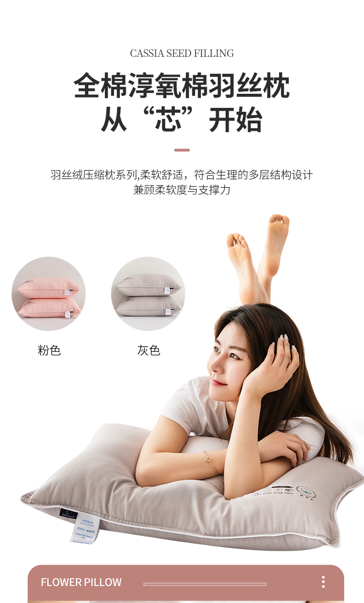 (总)梦叶草2021新款全棉枕芯淳氧棉羽丝枕芯