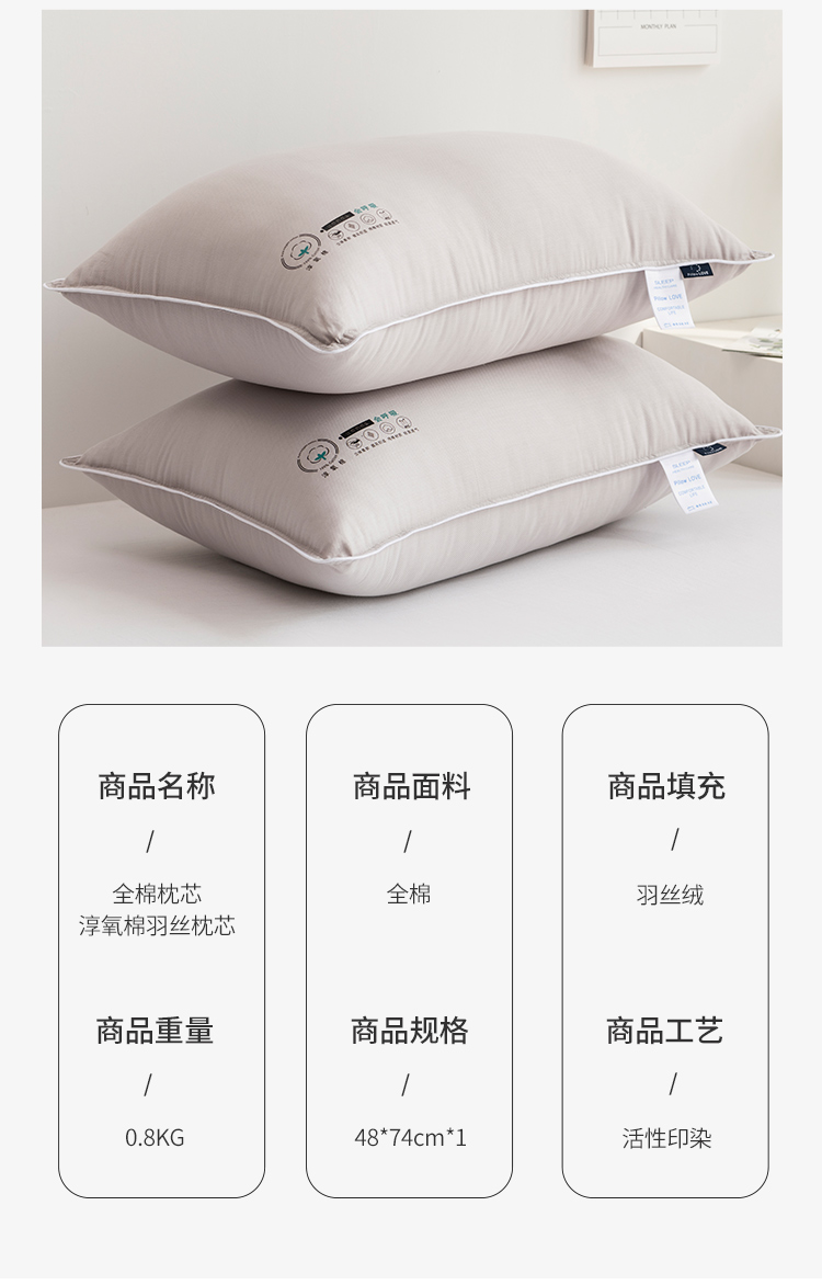 商品名称:(总)梦叶草2021新款全棉枕芯淳氧棉羽丝枕芯