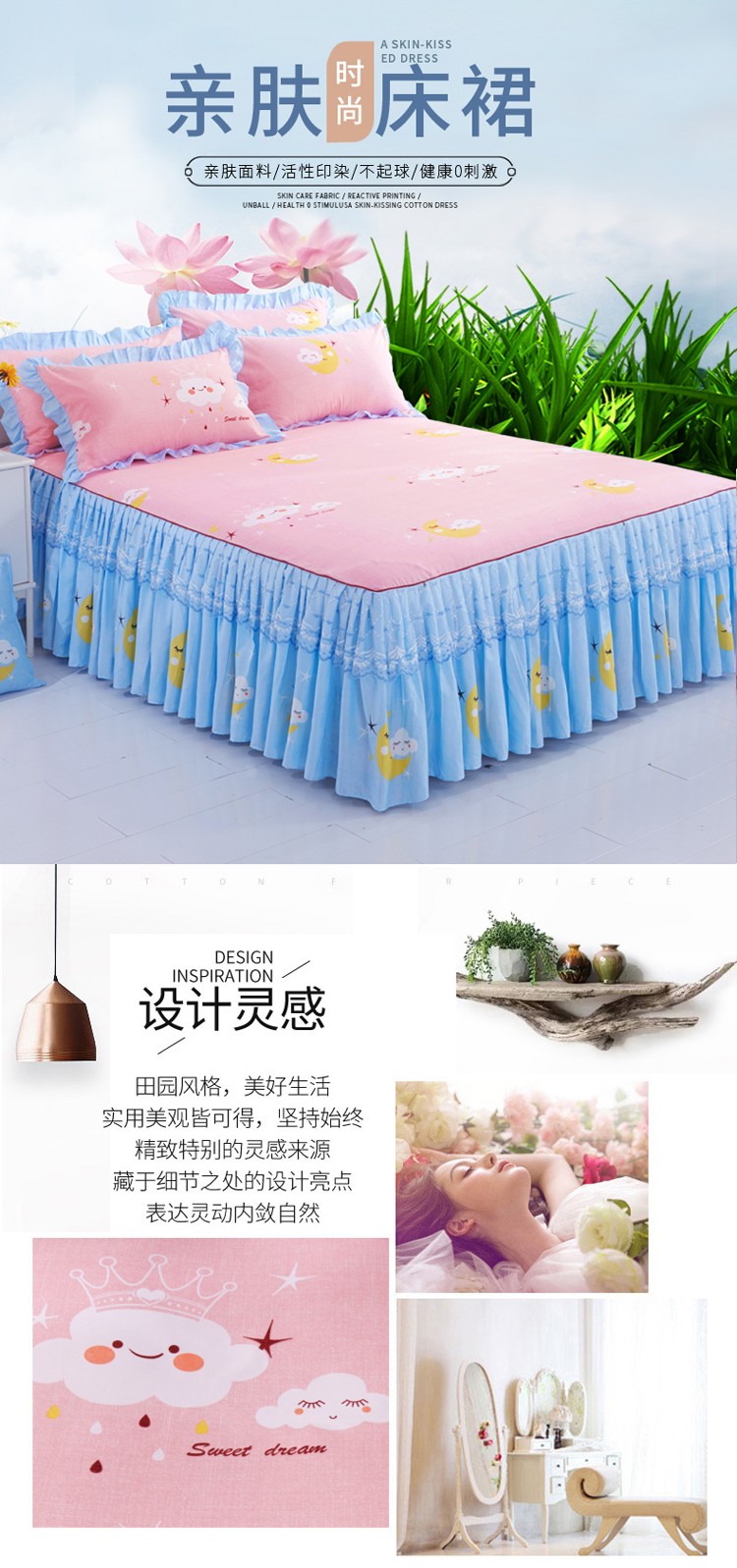 艾裙海床笠 2025新款韩版蕾丝单床裙云朵宝贝-玉