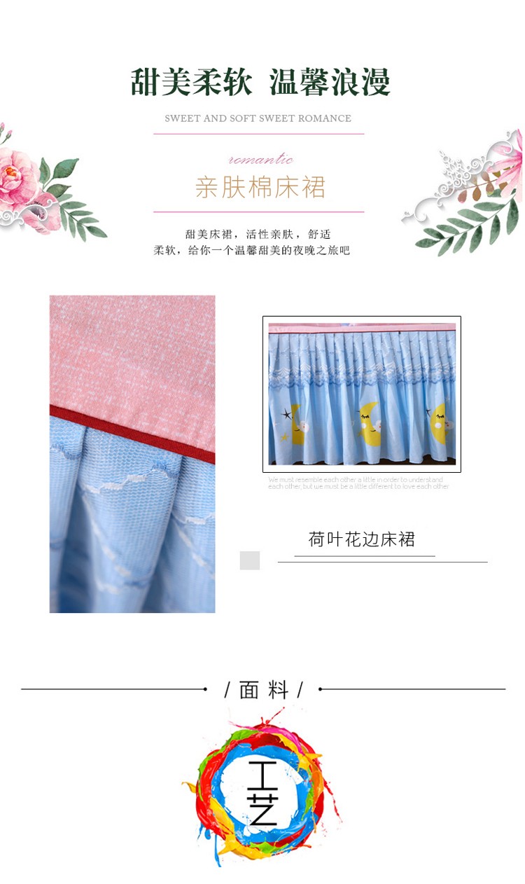 (总)艾裙海 2025秋冬新款木棉皱皱双层纱夹棉床裙系列单品床裙,百福蓝,繁华碟影,黑色波点,可爱小女孩,兰桂芳绿,盛夏光年,素碟吟,紫藤花语