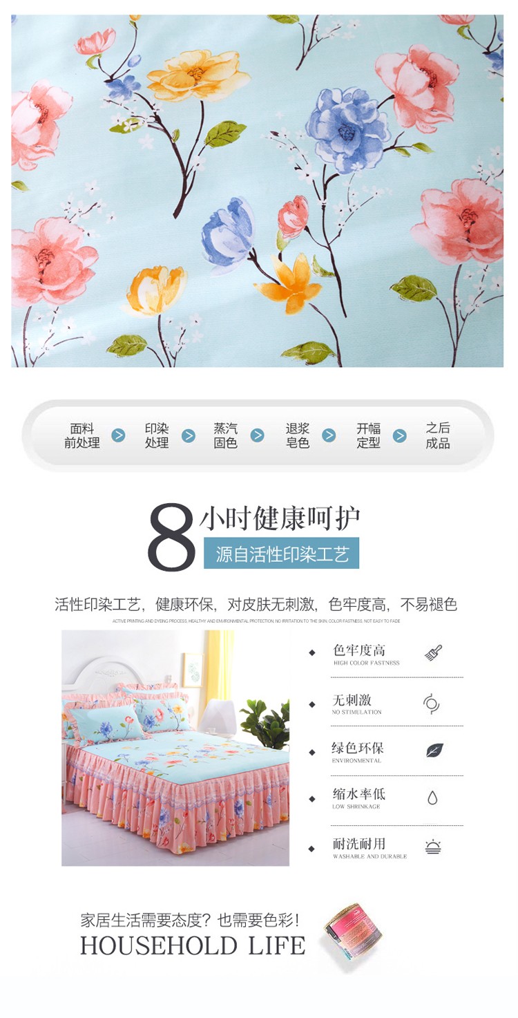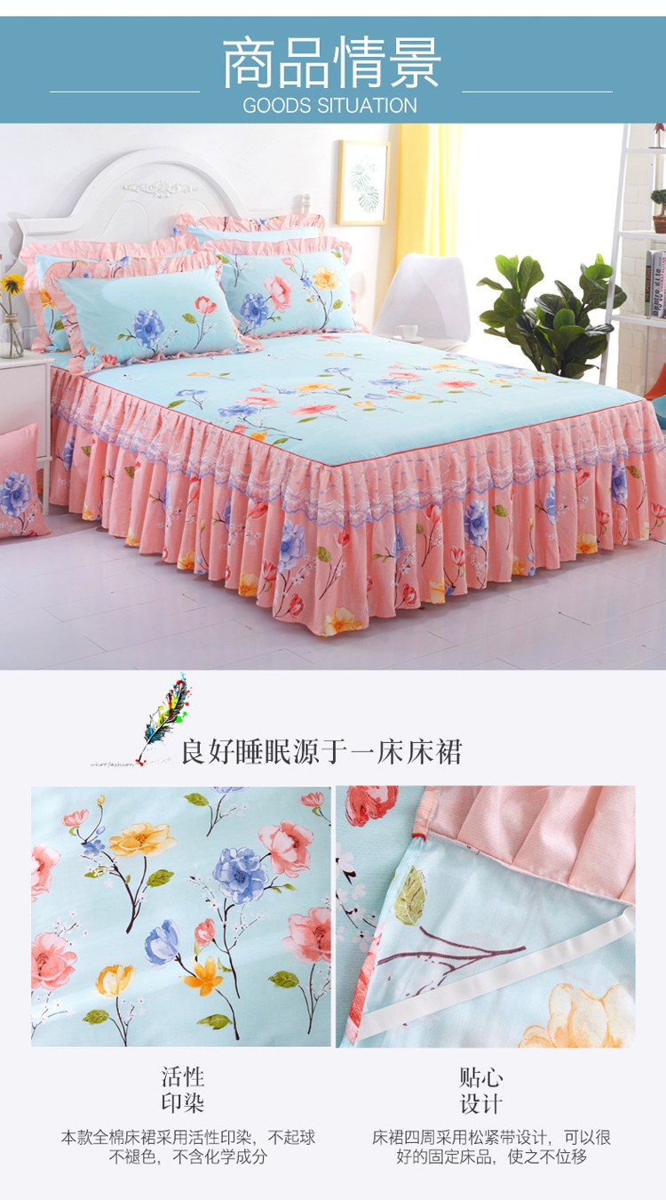 商品名称:艾裙海床笠 2025新款韩版蕾丝单床裙纷飞花语-绿