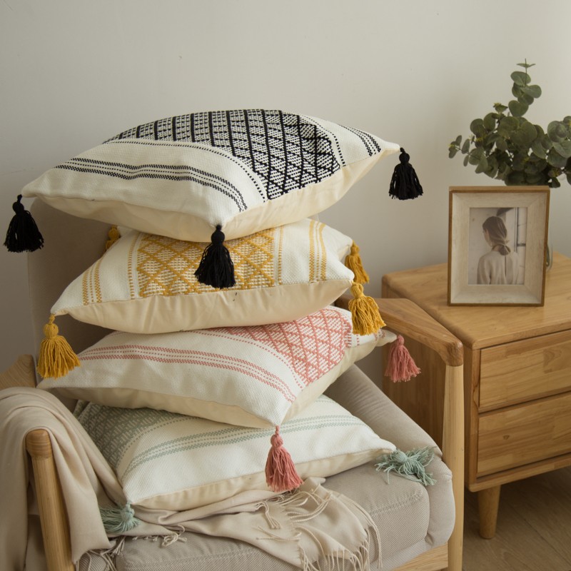 商品名称:恋佳 2021新款小格工艺编织枕系列 小格子黑