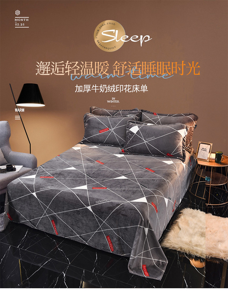 锦罗绣 2021新款牛奶绒印花单品床单 几何梦想