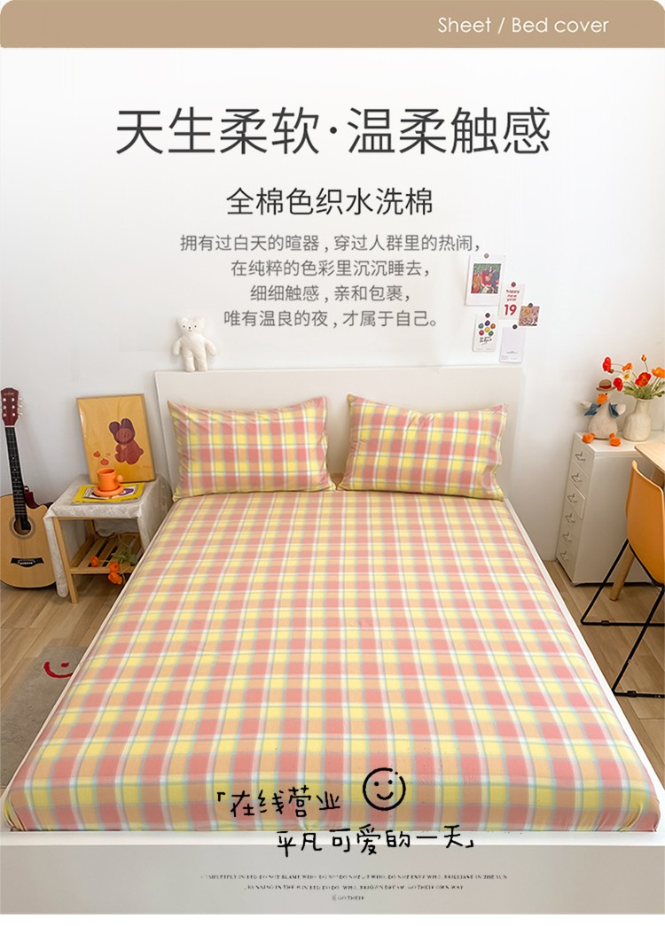 当前位置: 91家纺网 > 商品网购 > 床品套件 > 多件套 > 多件套 > 艾咪 新款全棉色织水洗棉学生宿舍单品床单三件套 弗暖-粉黄