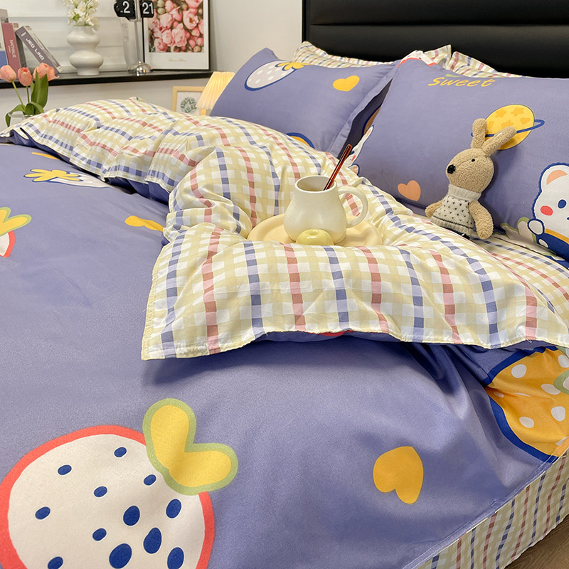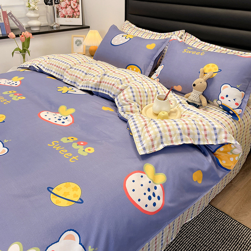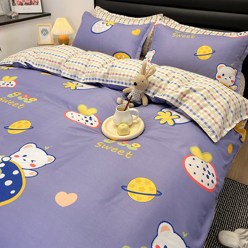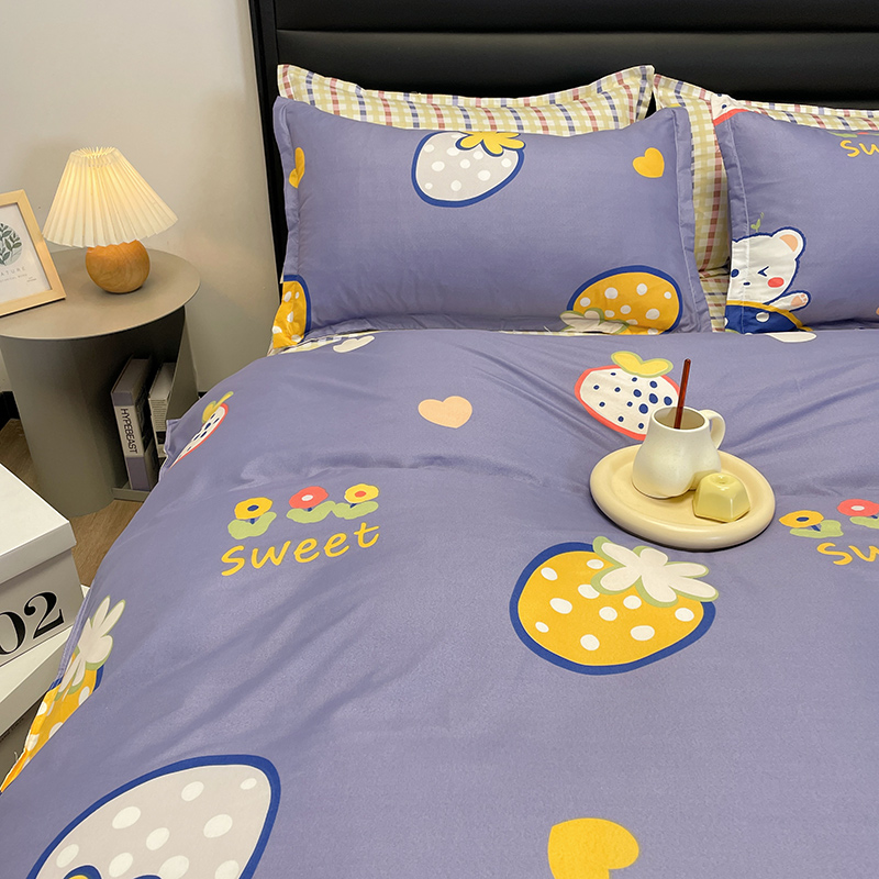 维娜斯家纺 2022新款芦荟棉四件套 草莓熊紫