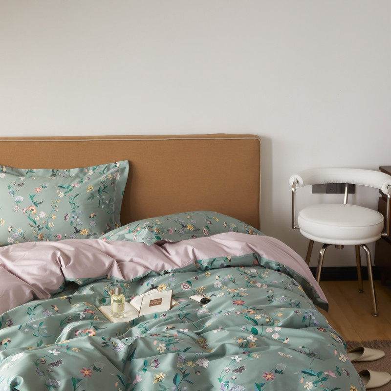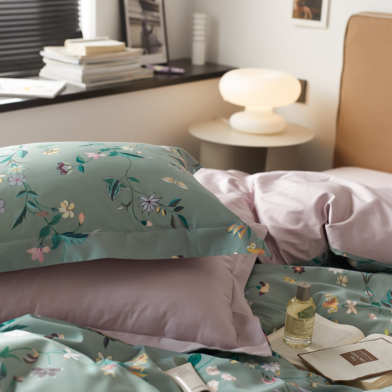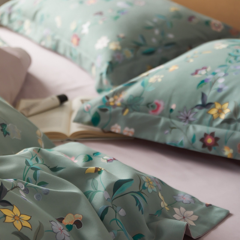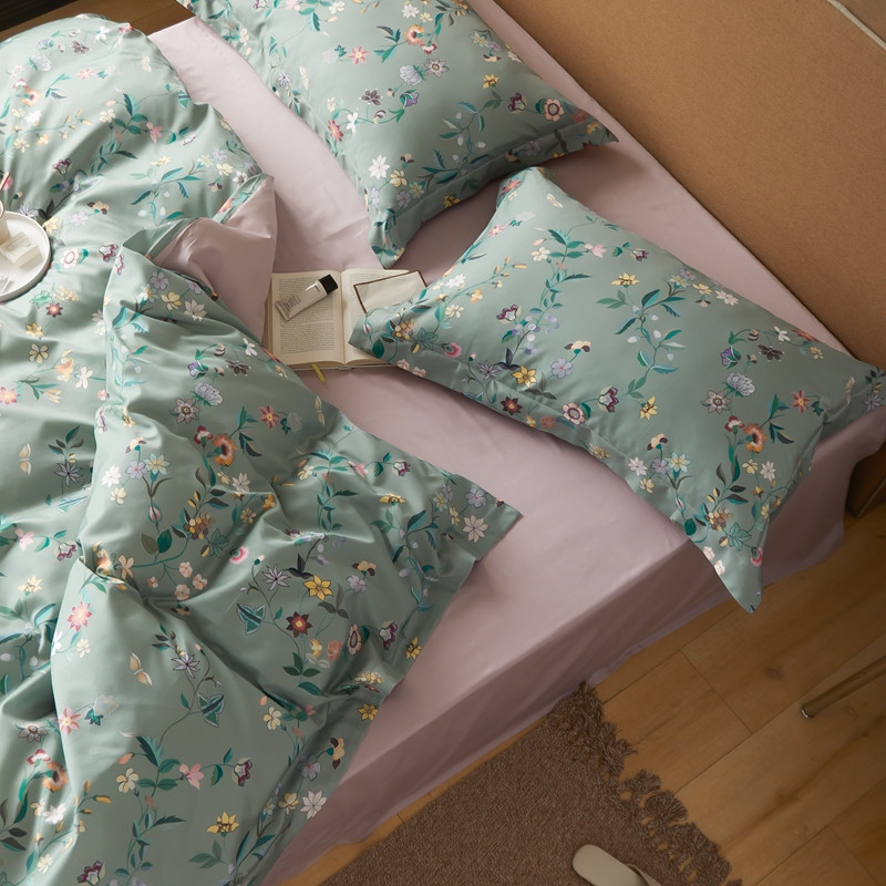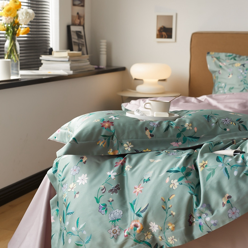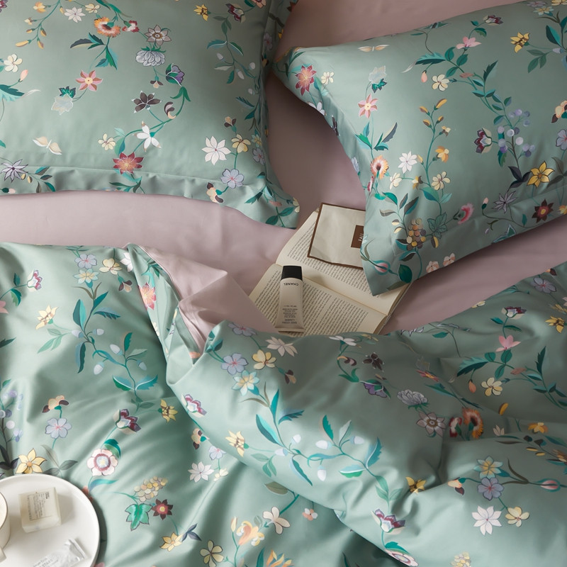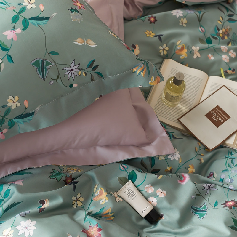 优然居 2021新款60支数码印花宽边四件套 温妮绿