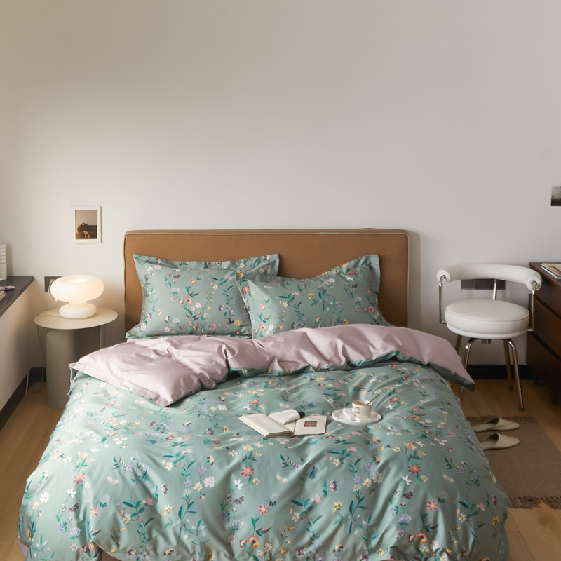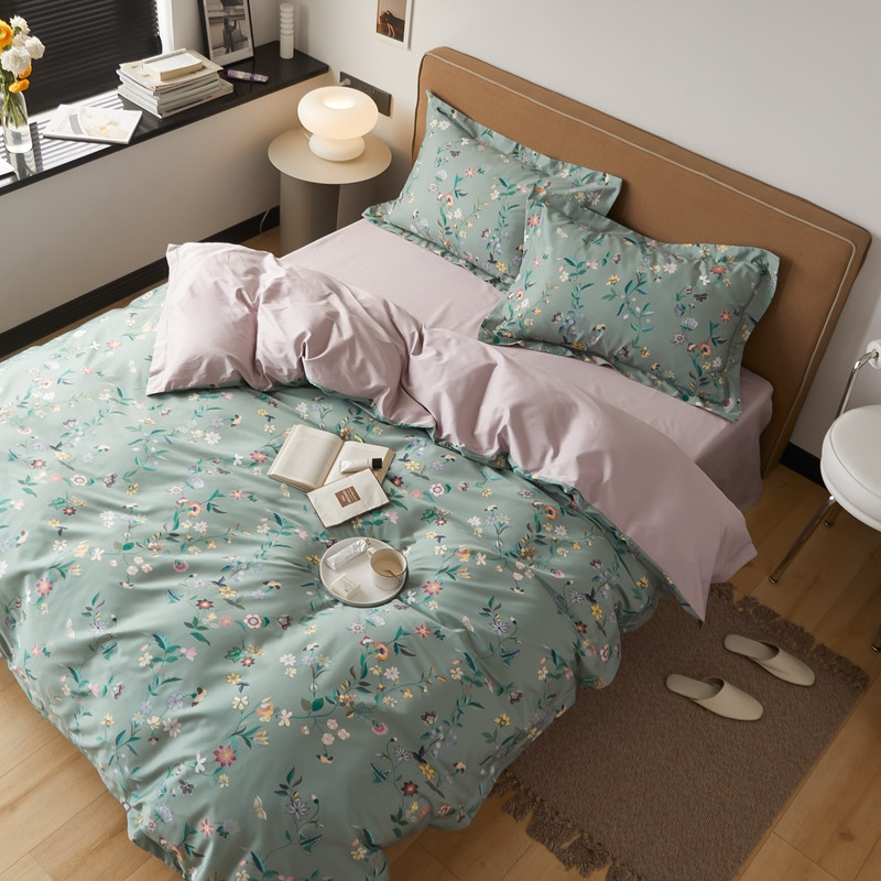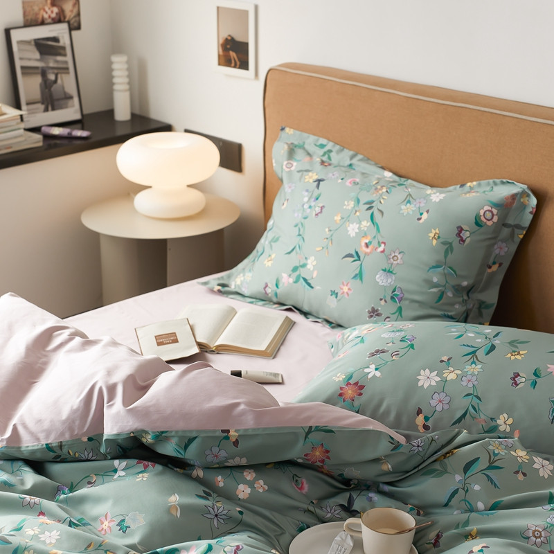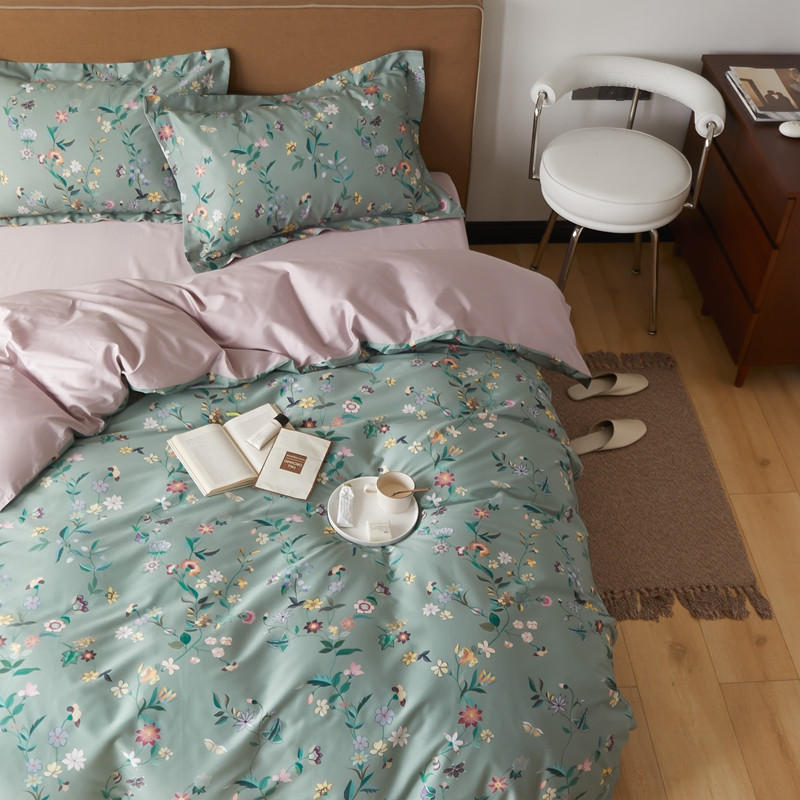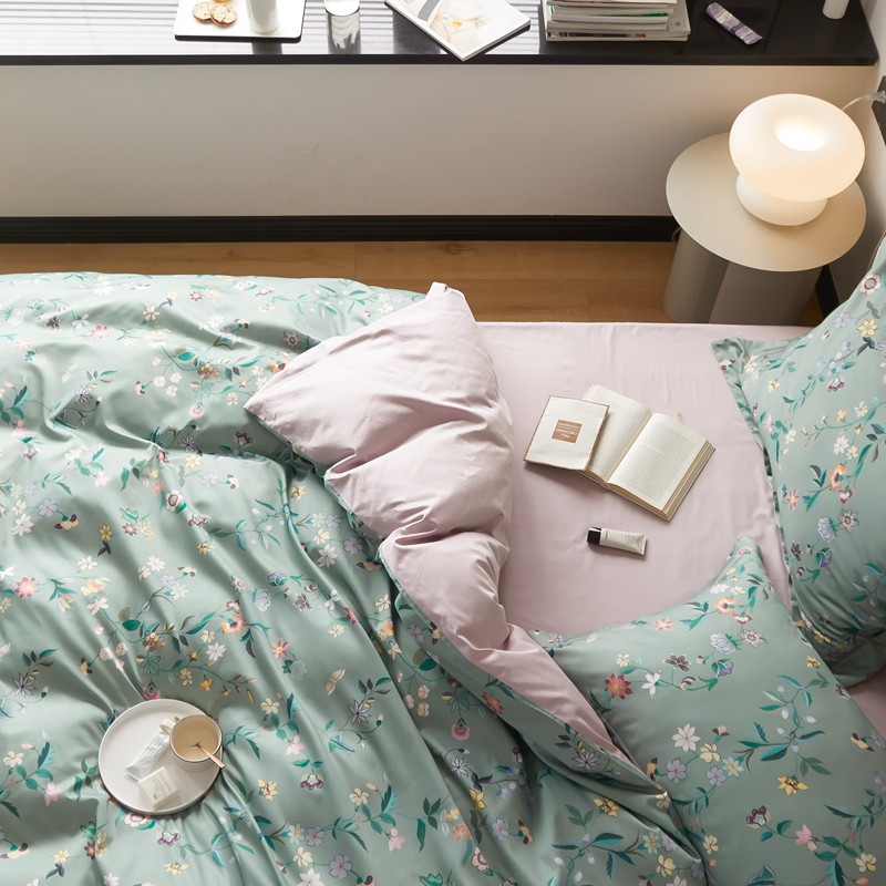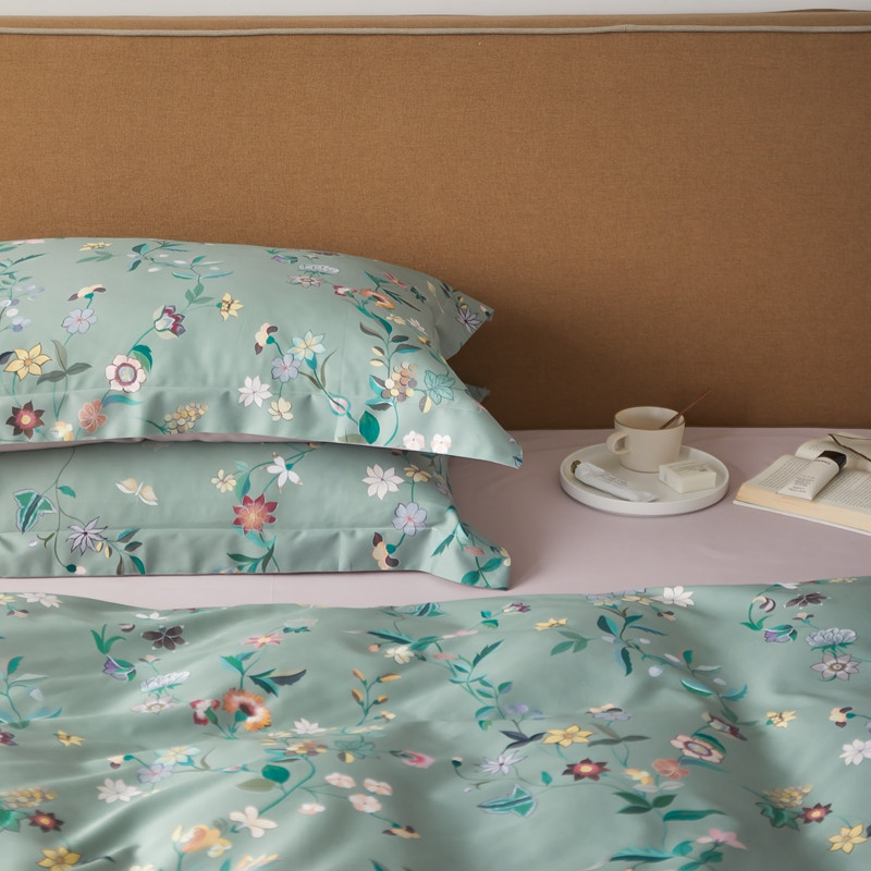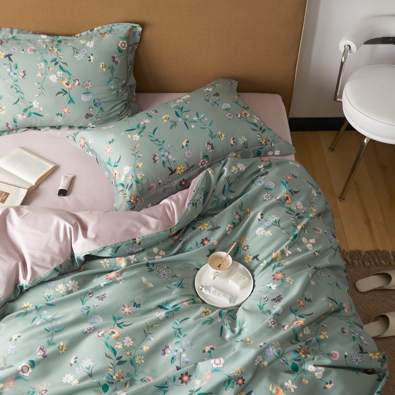 优然居 2021新款60支数码印花宽边四件套 温妮绿