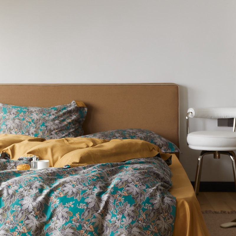 (总)优然居2020新款100支婴儿暖绒棉轻奢风刺绣四件套,大地黄加藏青,复古咖青,轻奢粉灰,霜绿大地色,霜绿复古色