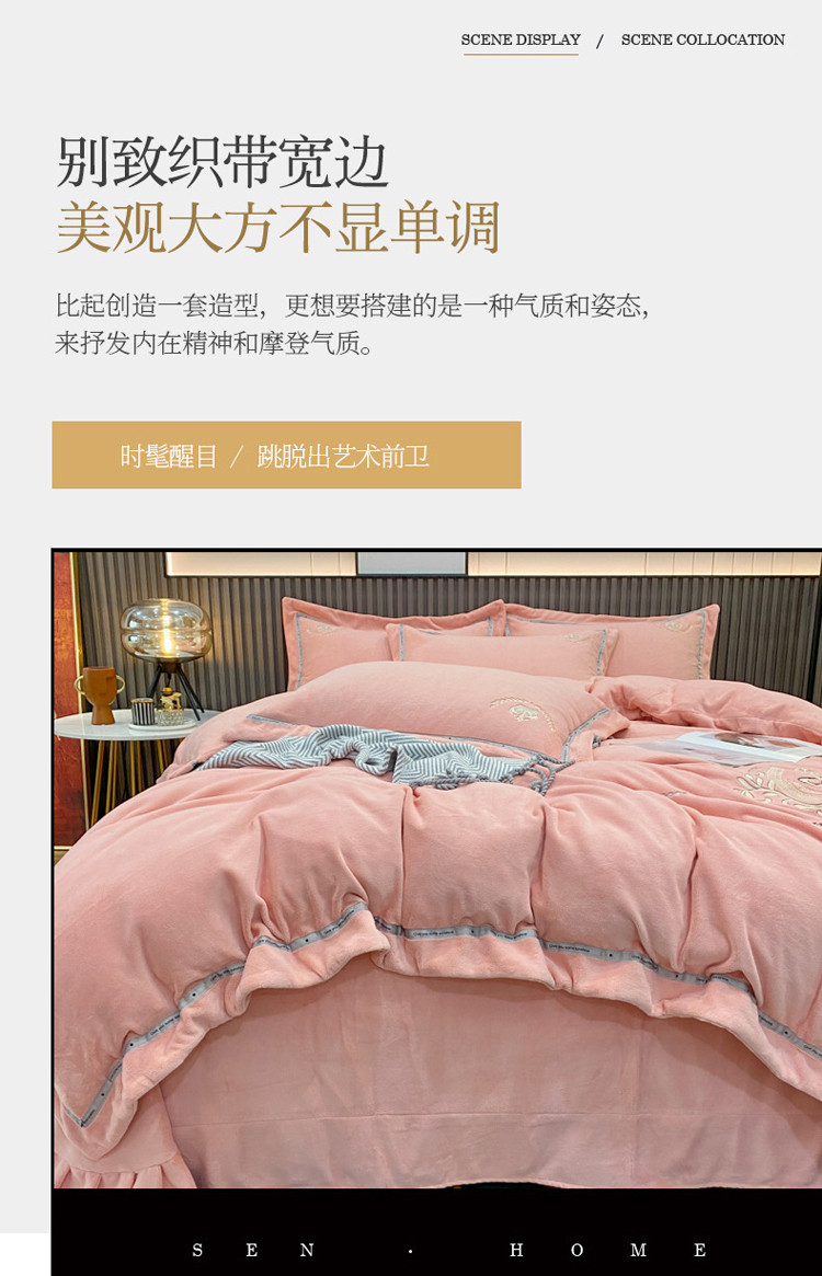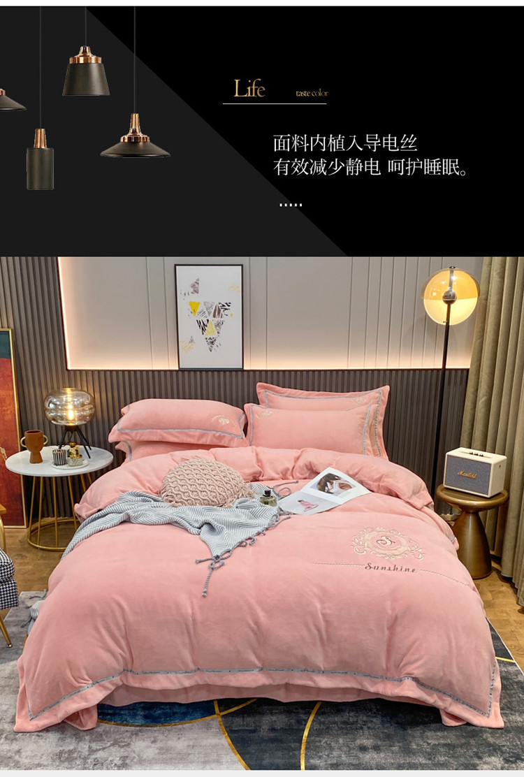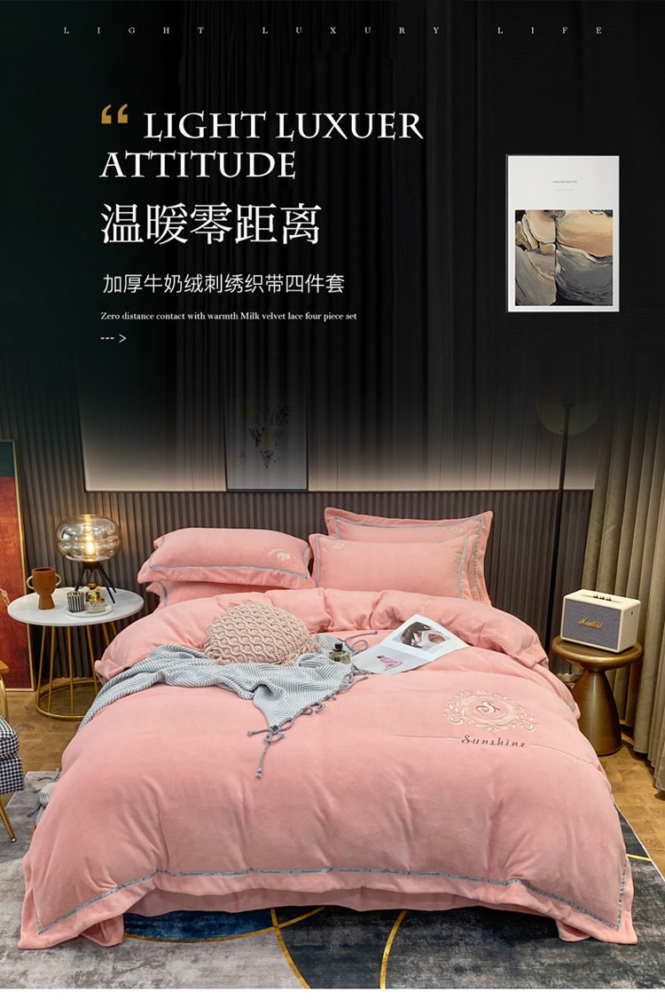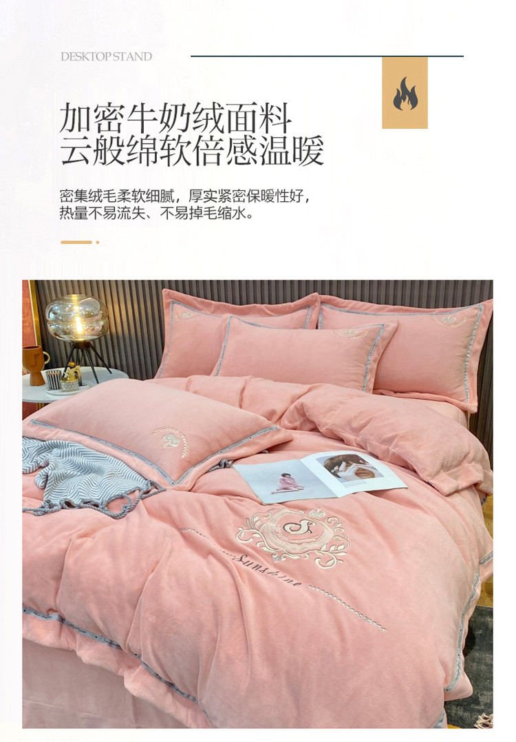 (总)星尚家纺 2025新款全消光A类母婴级加厚保暖牛奶绒绣花刺绣四件套,豆沙粉,卡其棕,梵星绿,孔雀蓝,高级灰,香芋紫,樱花粉