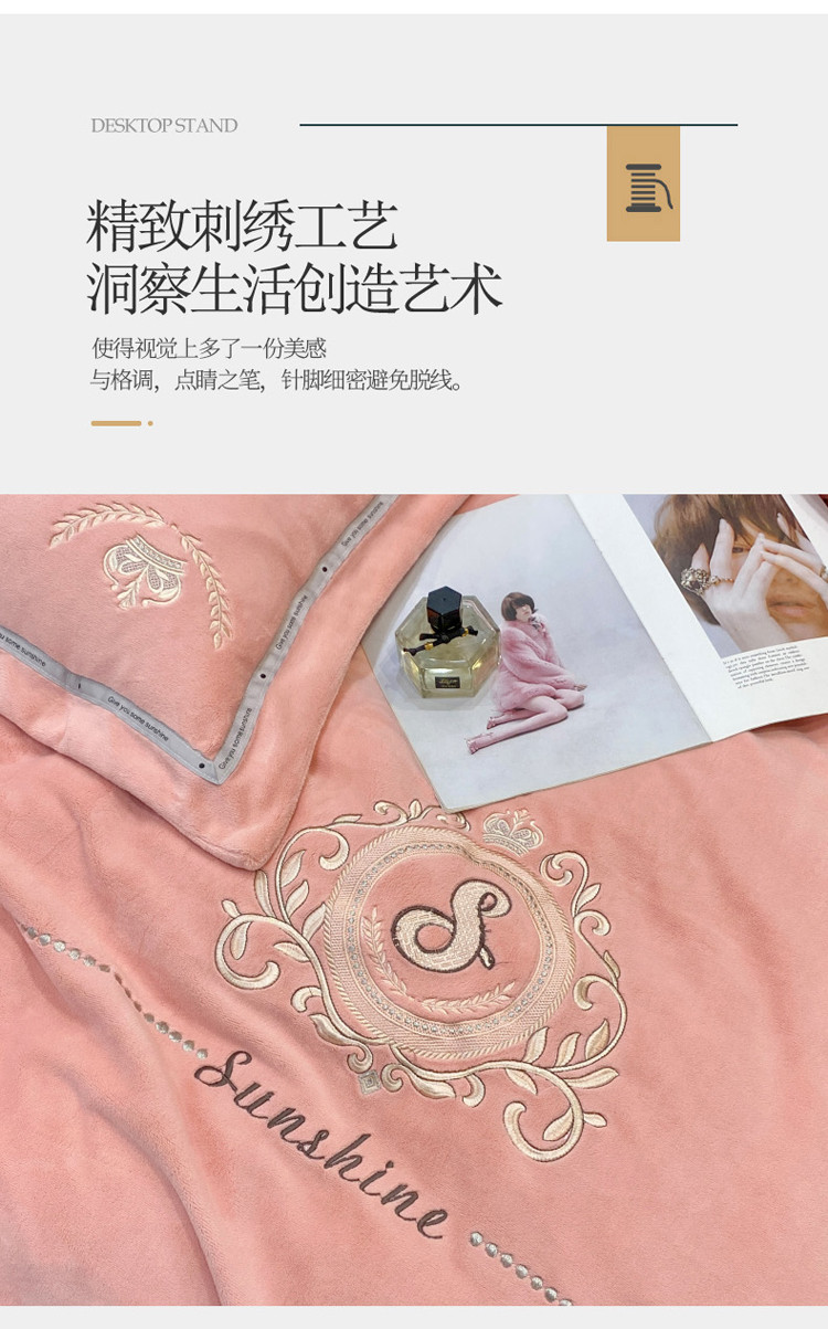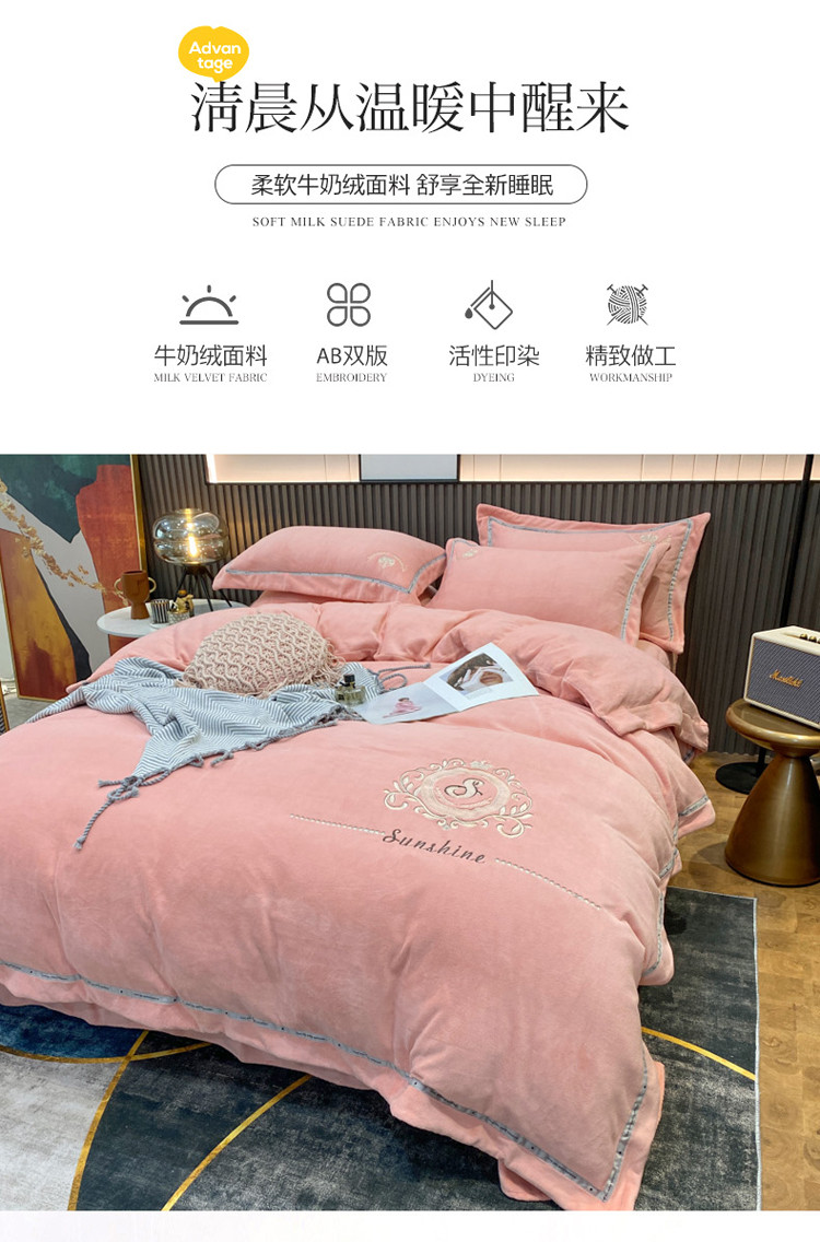(总)星尚家纺 2024新款全消光230g牛奶绒刺绣保暖四件套-花漾,晨雾绿,豆沙粉,樱花粉