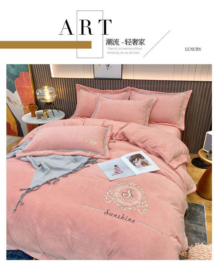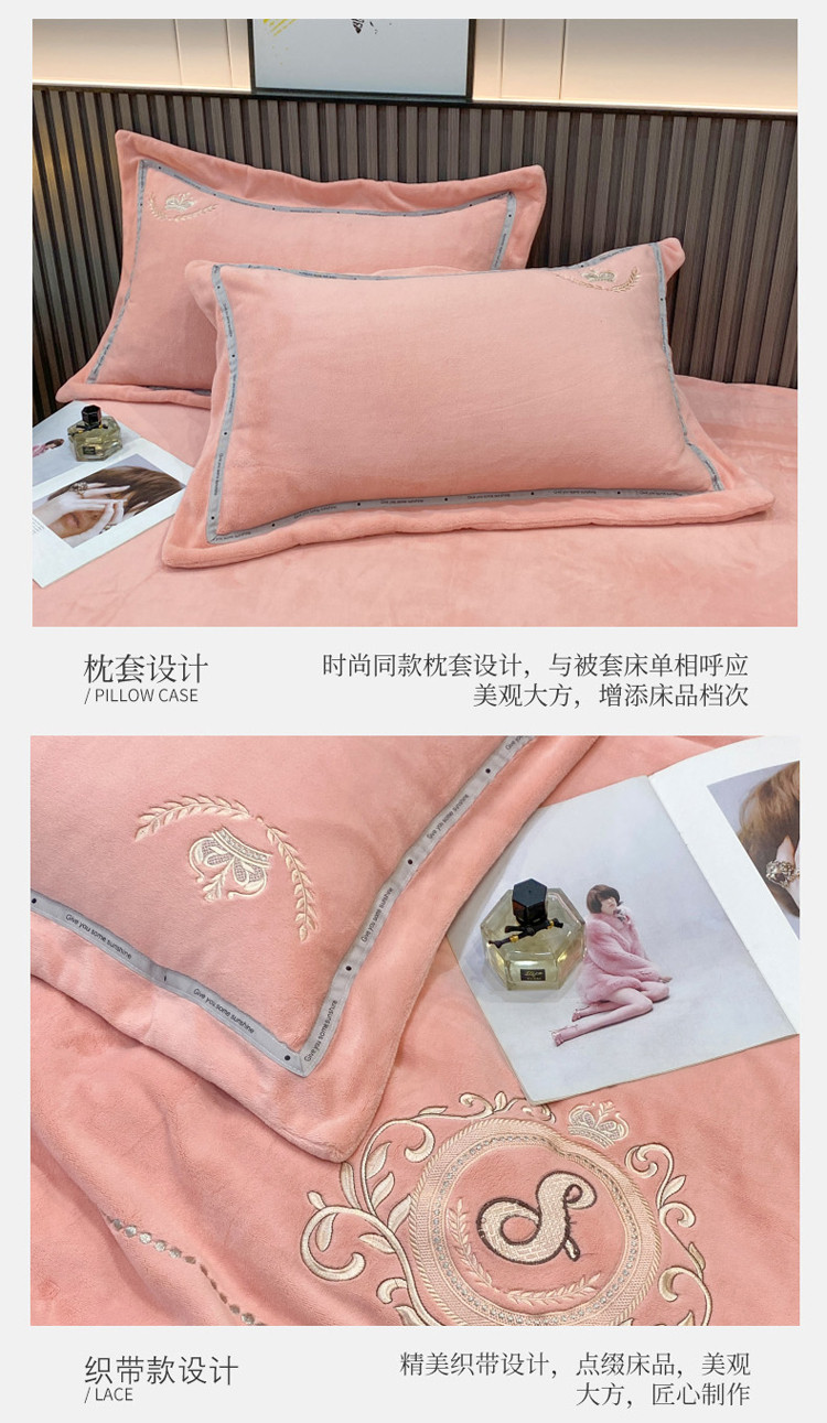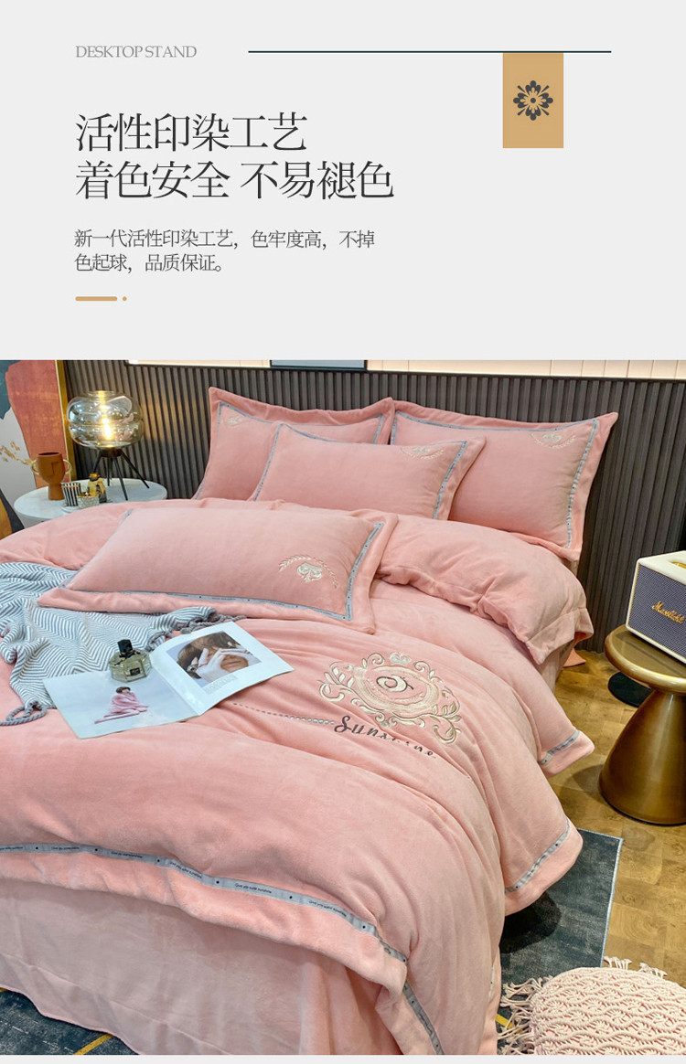 (总)星尚家纺 2024新款全消光A类230g牛奶绒韩版绣花绒四件套-绚丽花语,豆沙粉,浪漫紫,雾霾蓝,樱花粉,晨雾绿