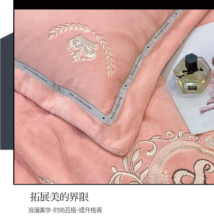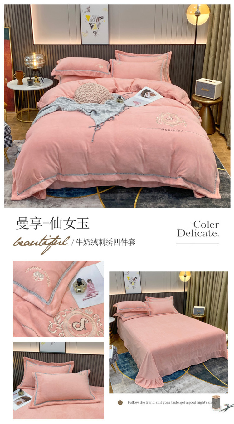 星尚新款A类牛奶绒加厚保暖轻氧绒法莱绒水晶绣花四件套 曼享-仙女玉