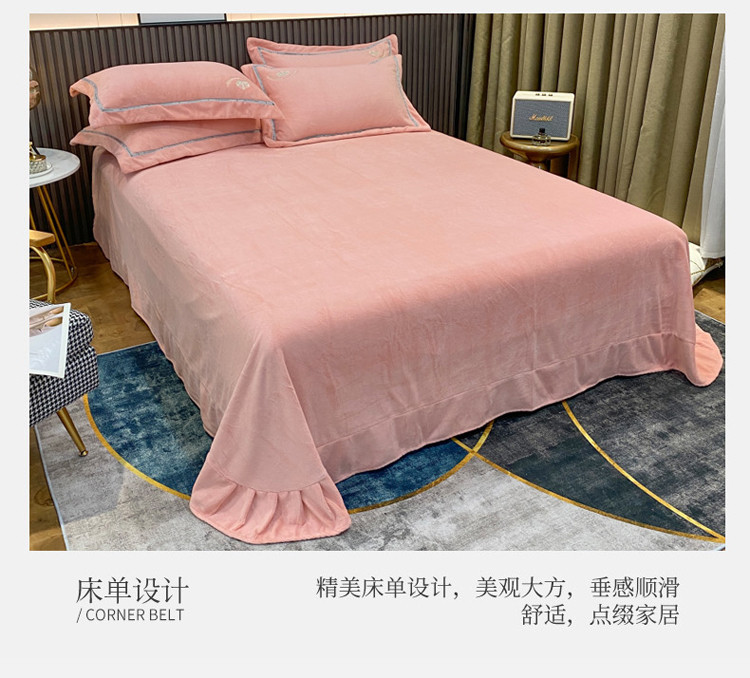 (总)星尚家纺 2024新款加厚保暖全消光牛奶绒夹棉床裙四件套-玫瑰之恋,粉玉,寐紫,浅蓝,水绿