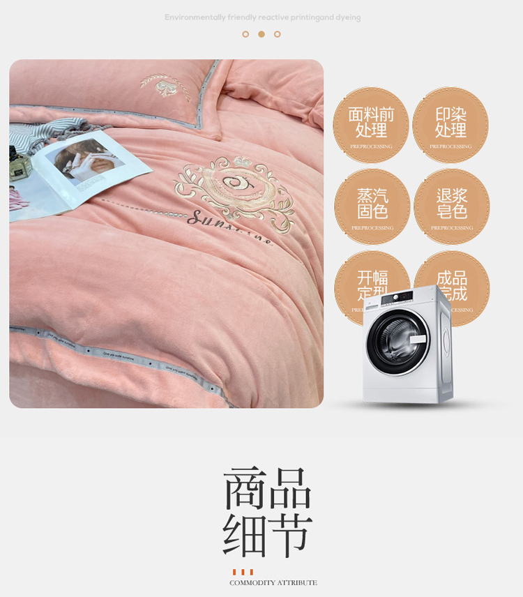 商品名称:星尚新款A类牛奶绒加厚保暖轻氧绒法莱绒水晶绣花四件套 曼享-仙女玉