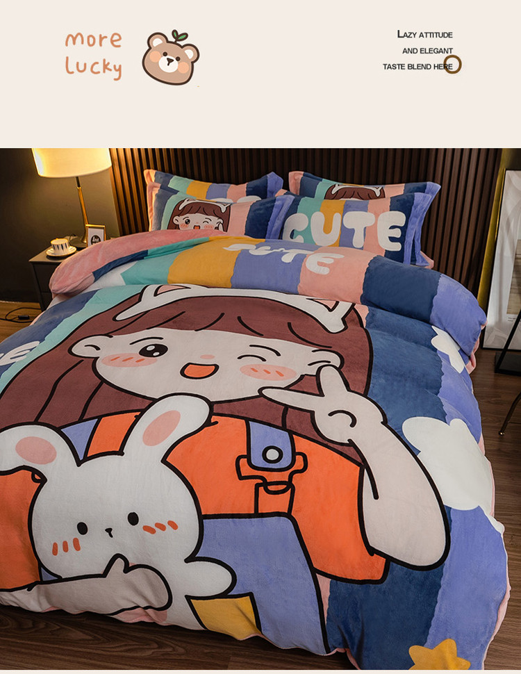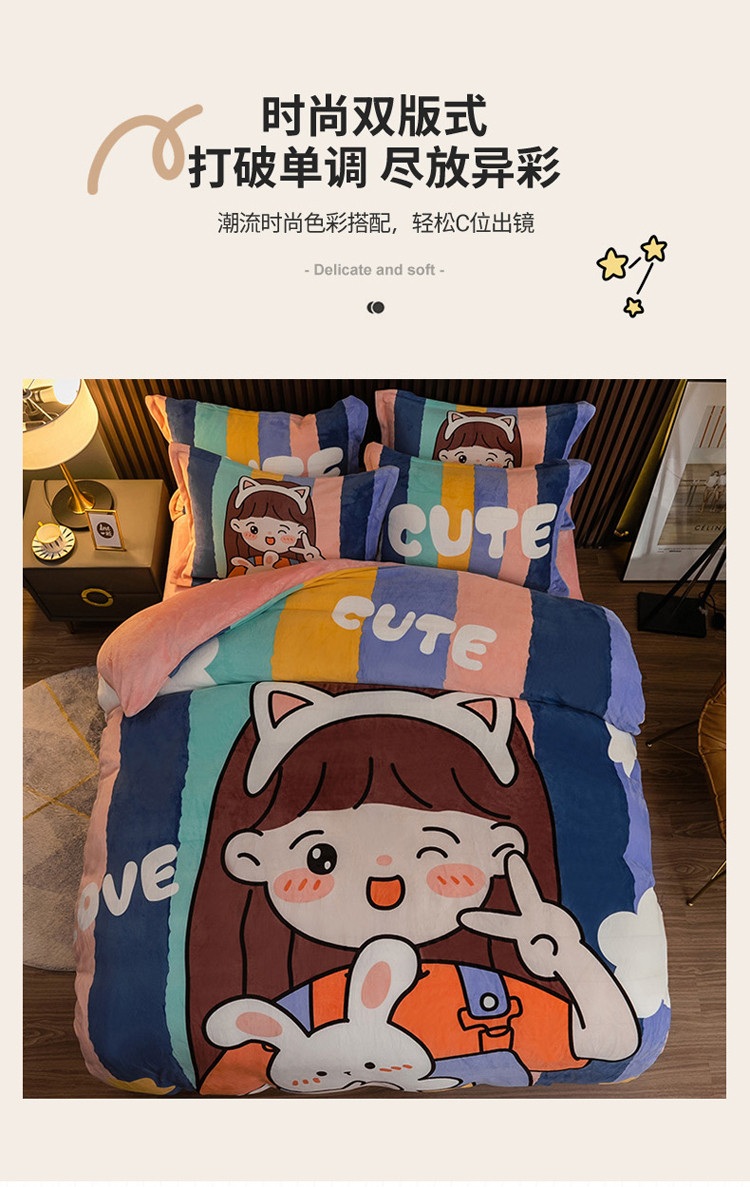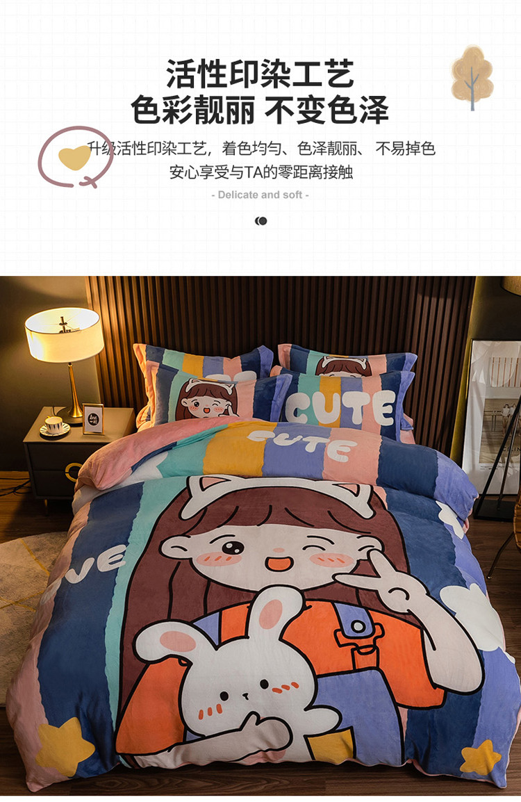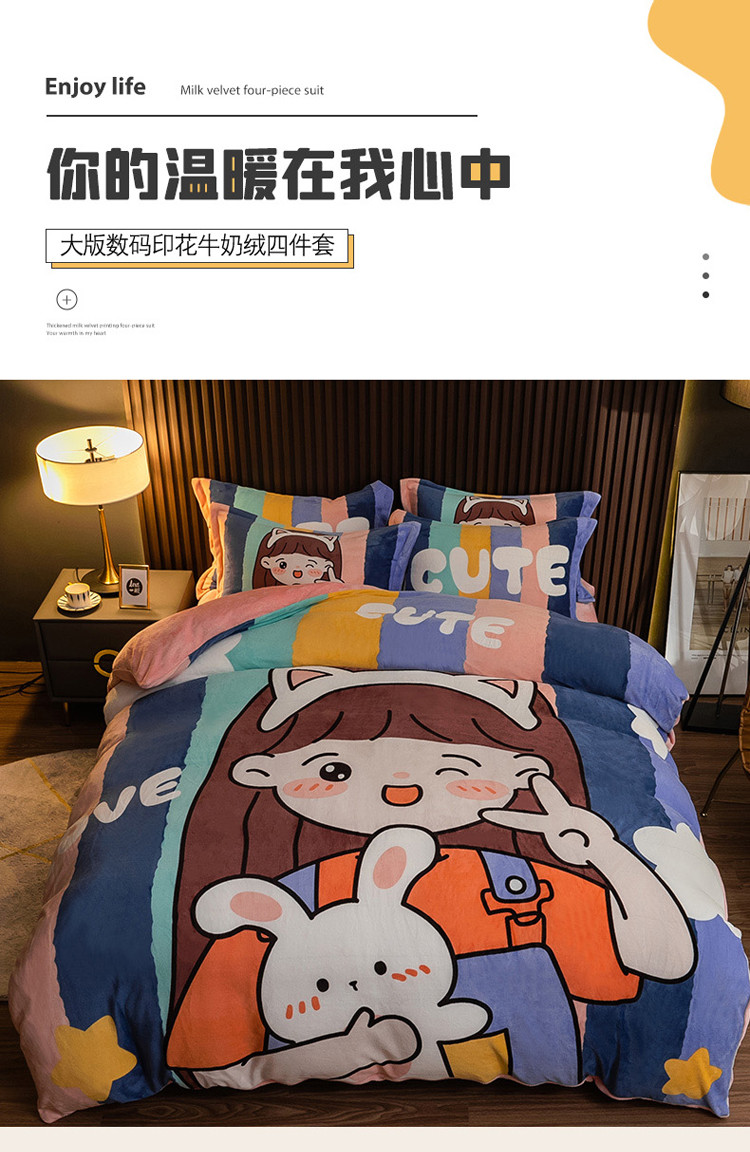 商品名称:寐居 2021新款大版数码印花牛奶绒四件套 可爱女孩