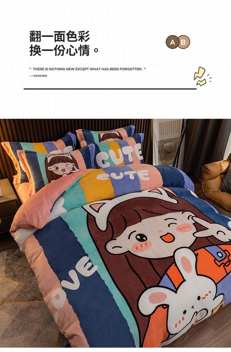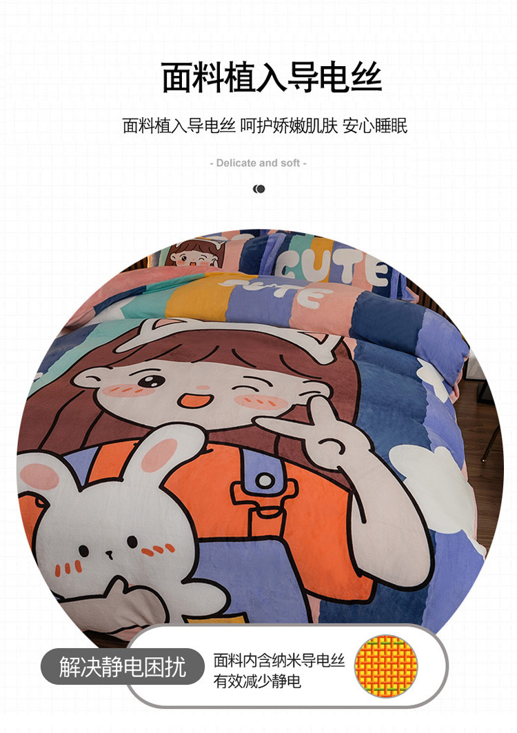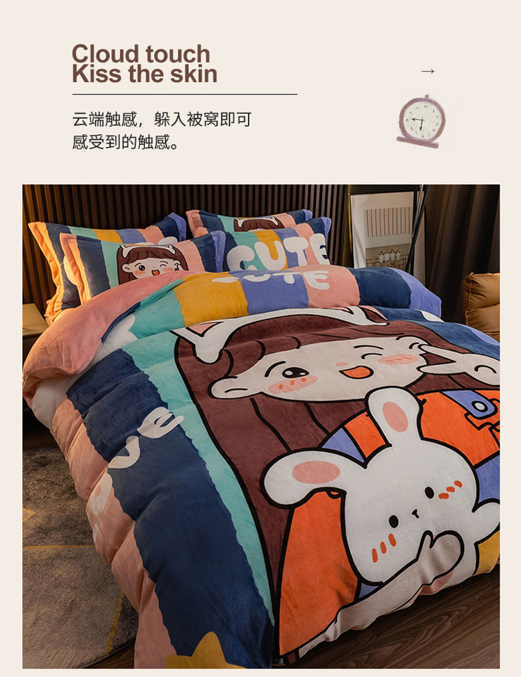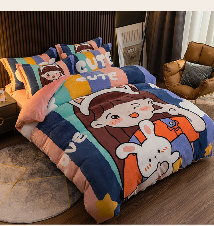 商品名称:寐居 2021新款大版数码印花牛奶绒四件套 可爱女孩