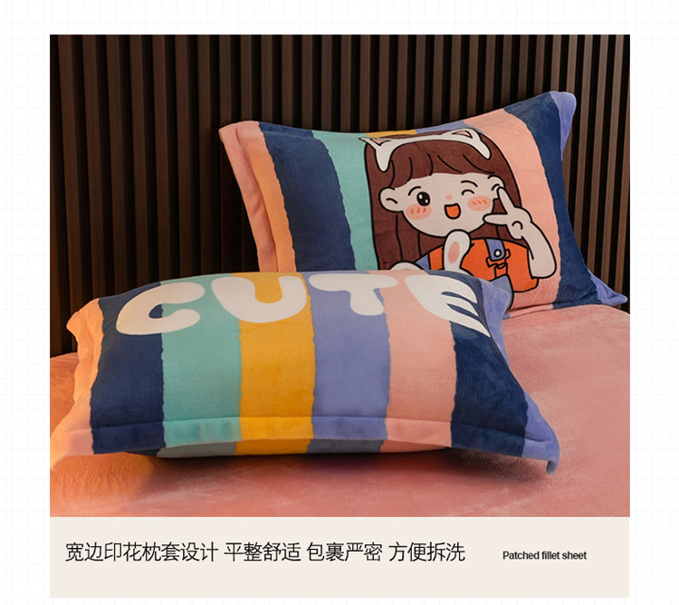 寐居 2021新款大版数码印花牛奶绒四件套 可爱女孩
