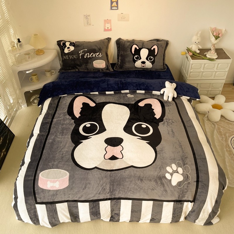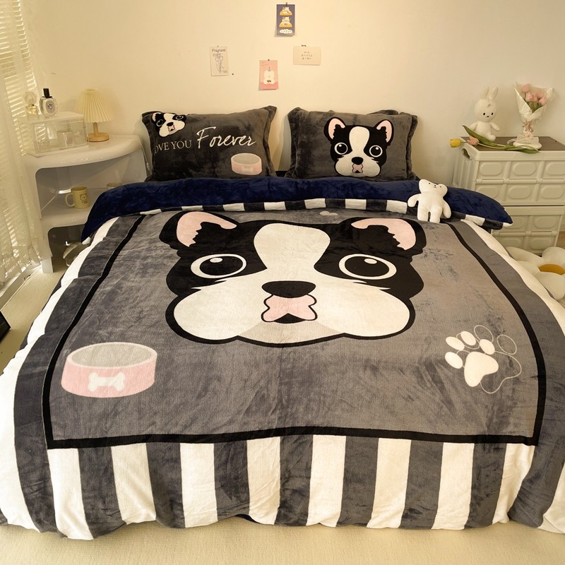 商品名称:慕尚 2022新款北欧牛奶绒大版四件套实拍图暖光 绅士狗