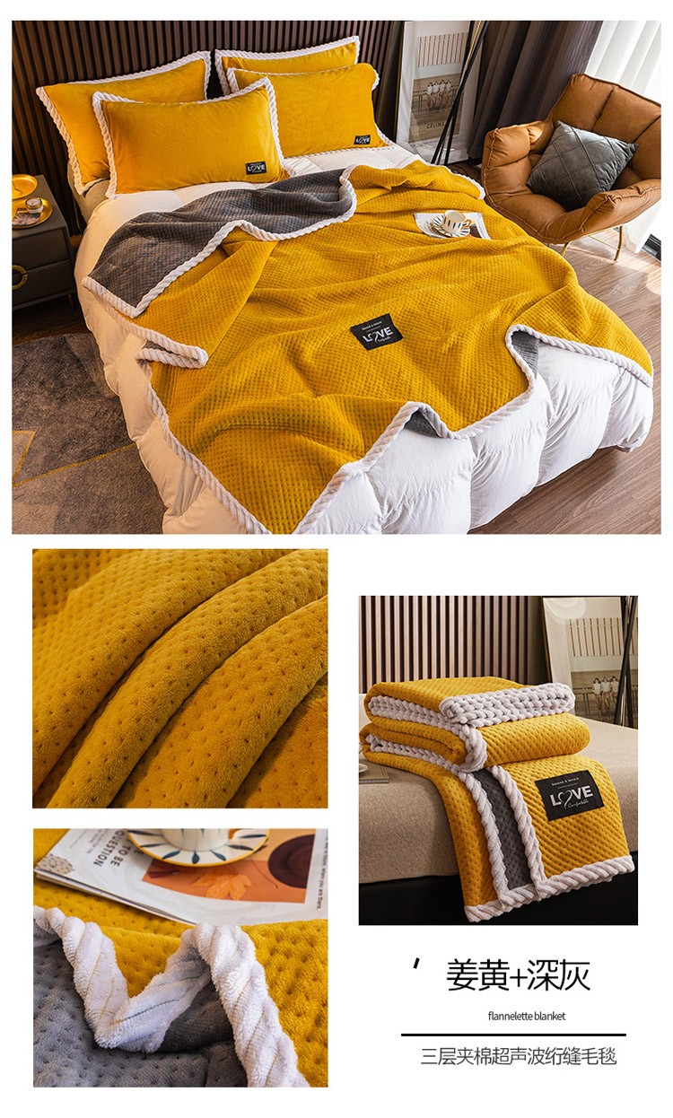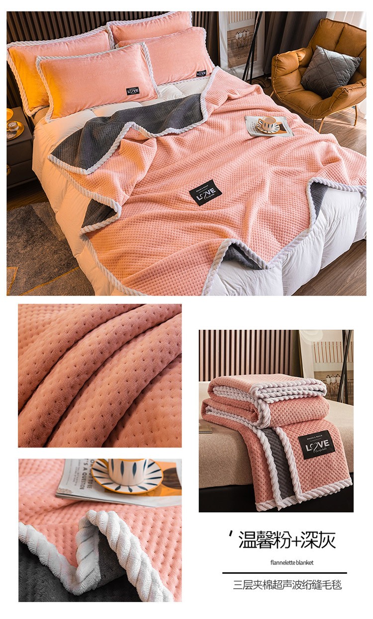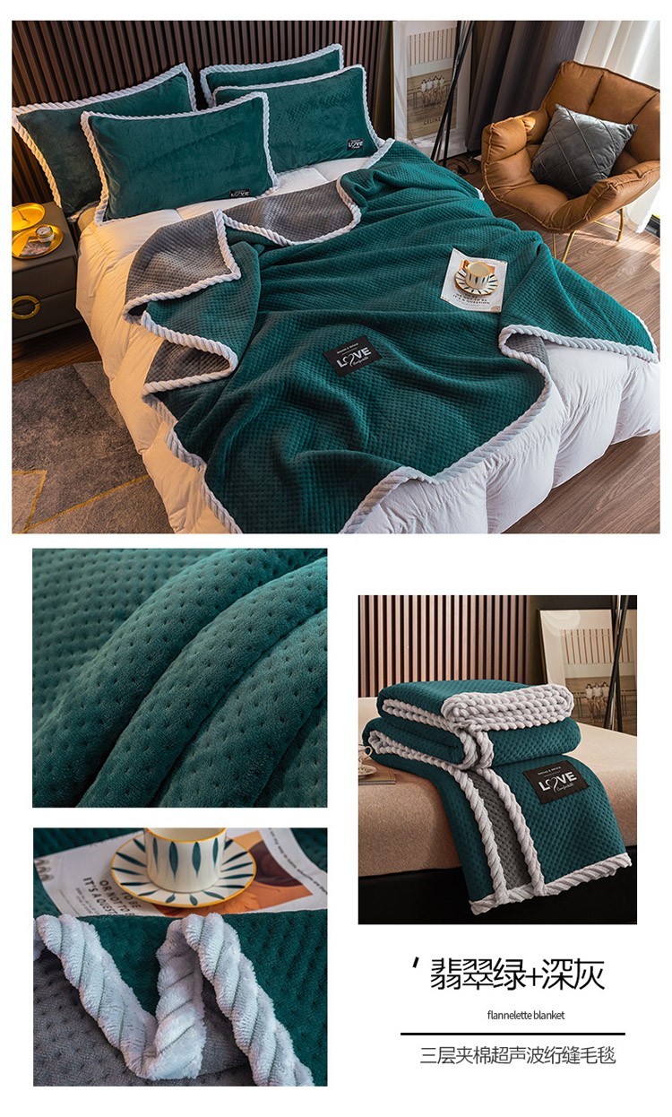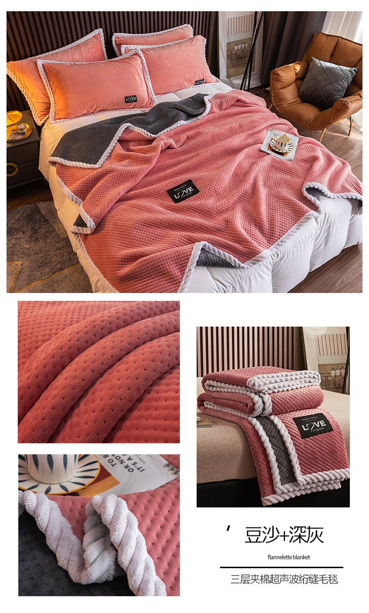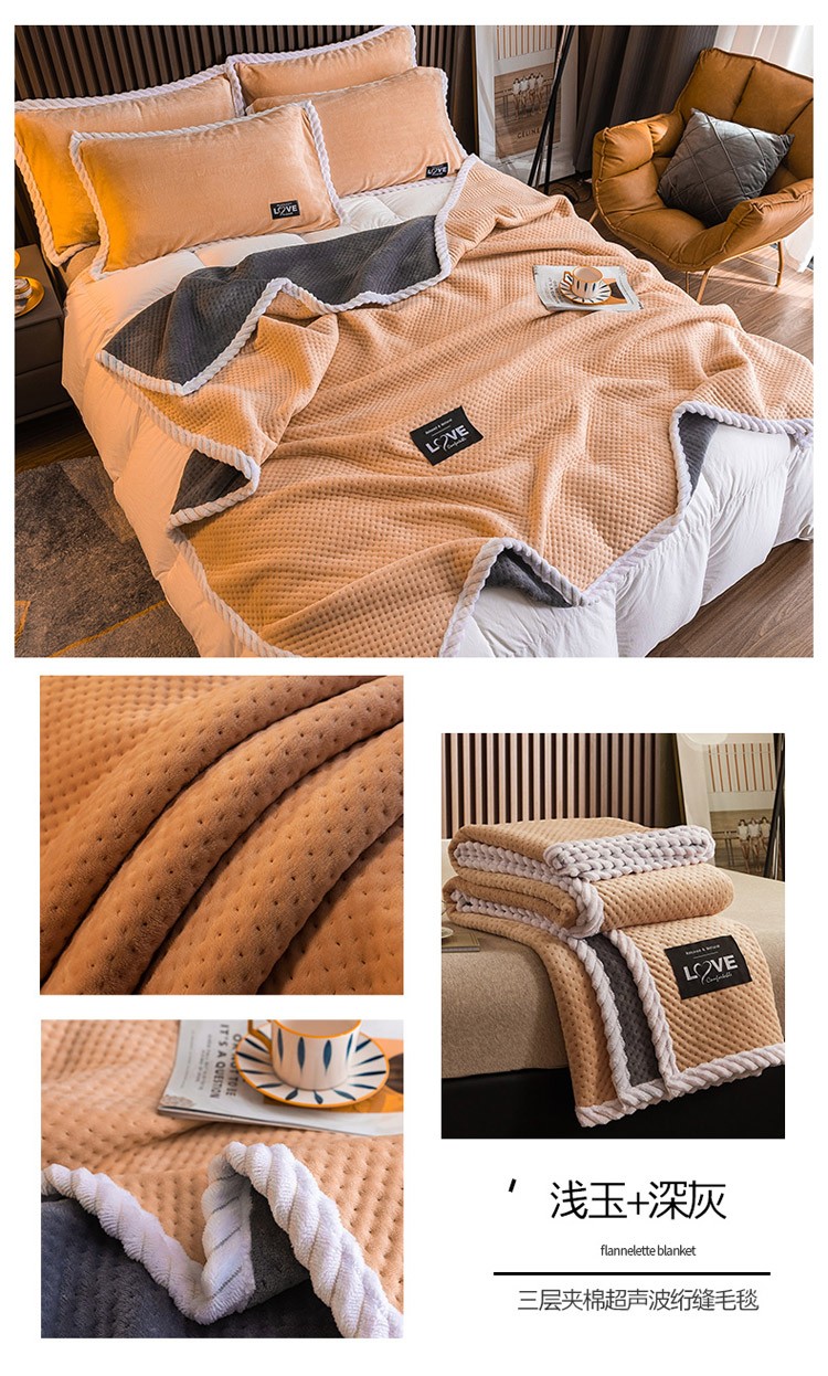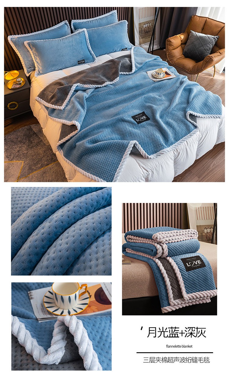 (总)宅部落2022法莱绒牛奶绒毯三层夹棉毯多功能毛毯绗缝毯