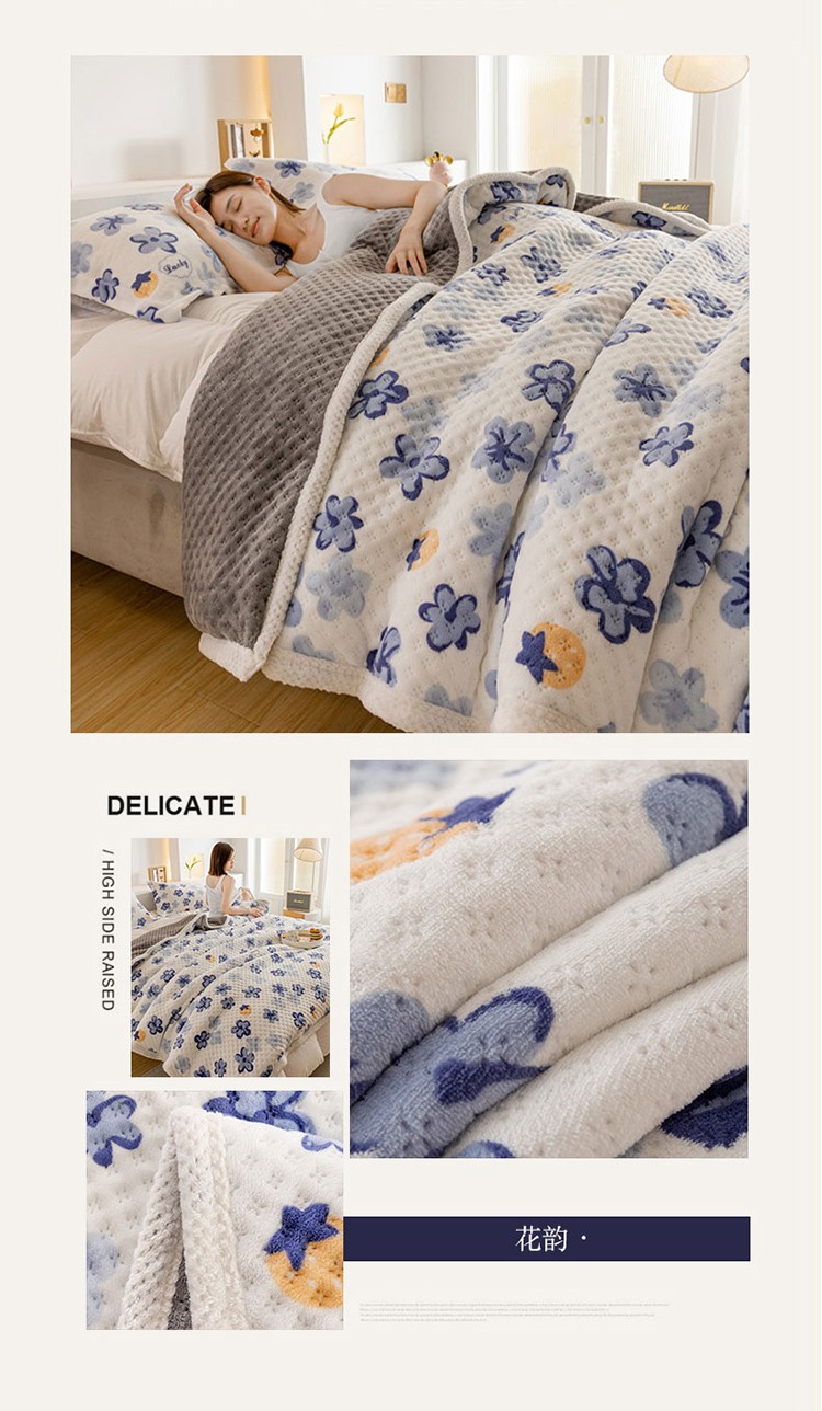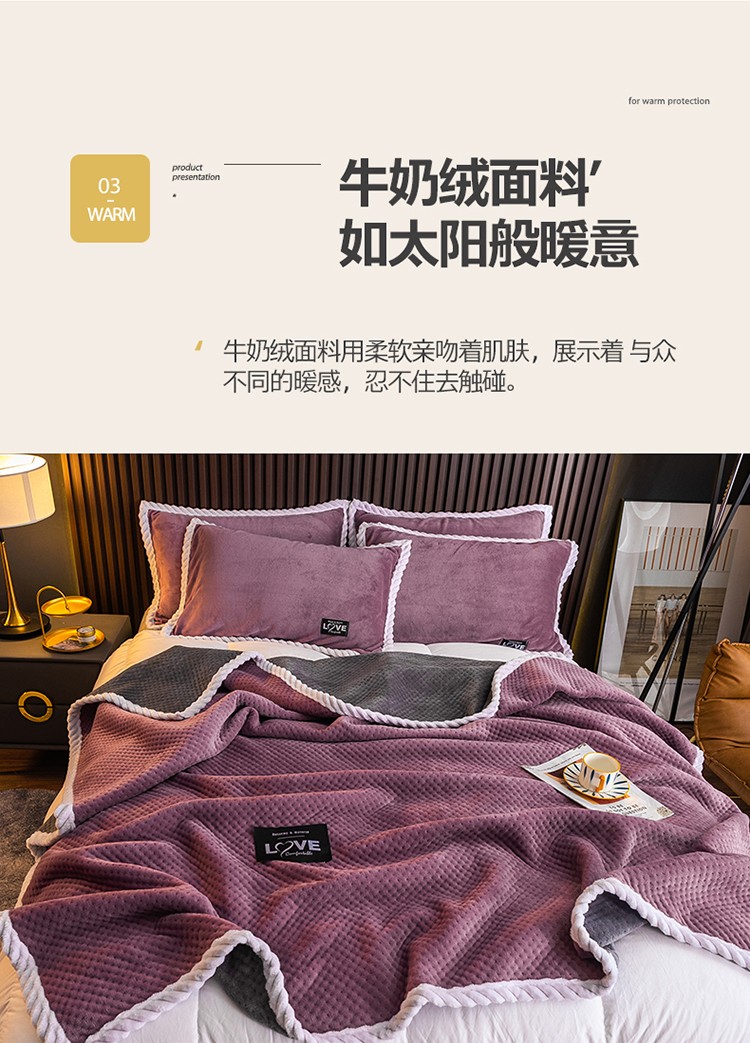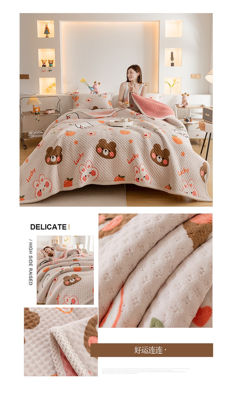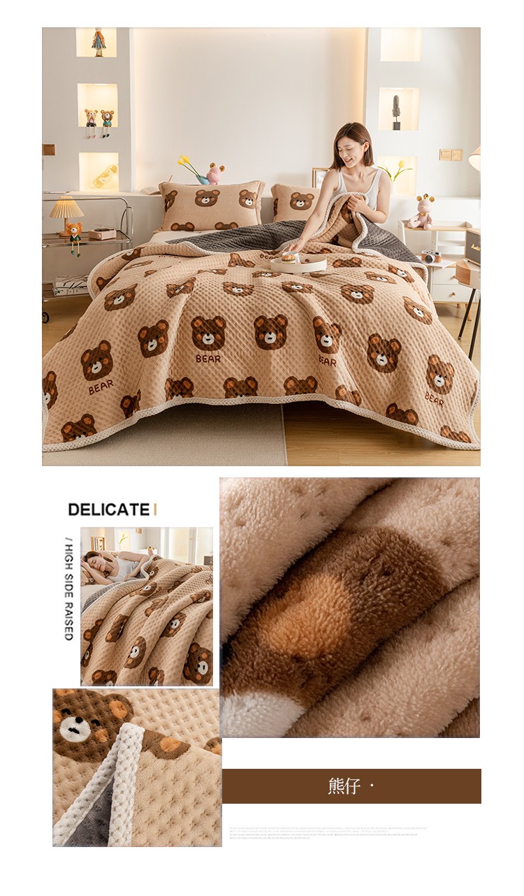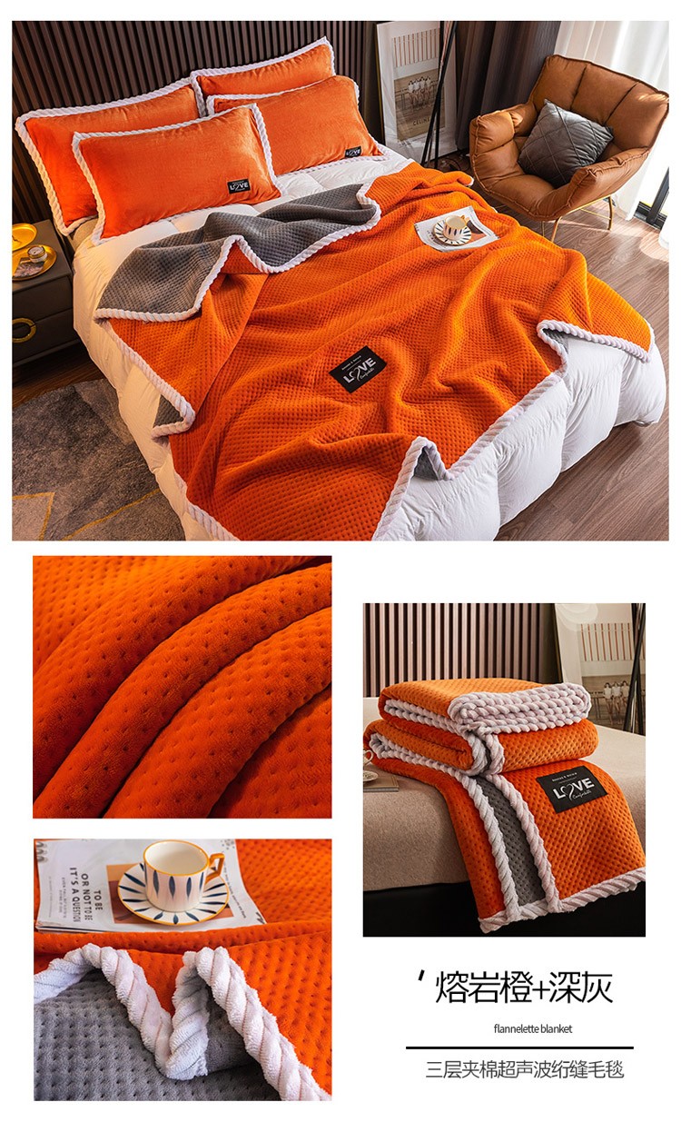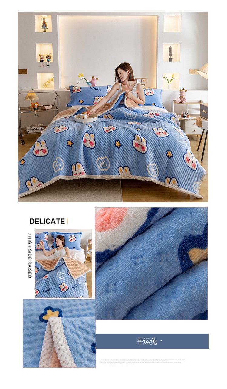 (总)宅部落2022法莱绒牛奶绒毯三层夹棉毯多功能毛毯绗缝毯