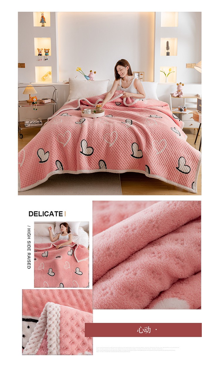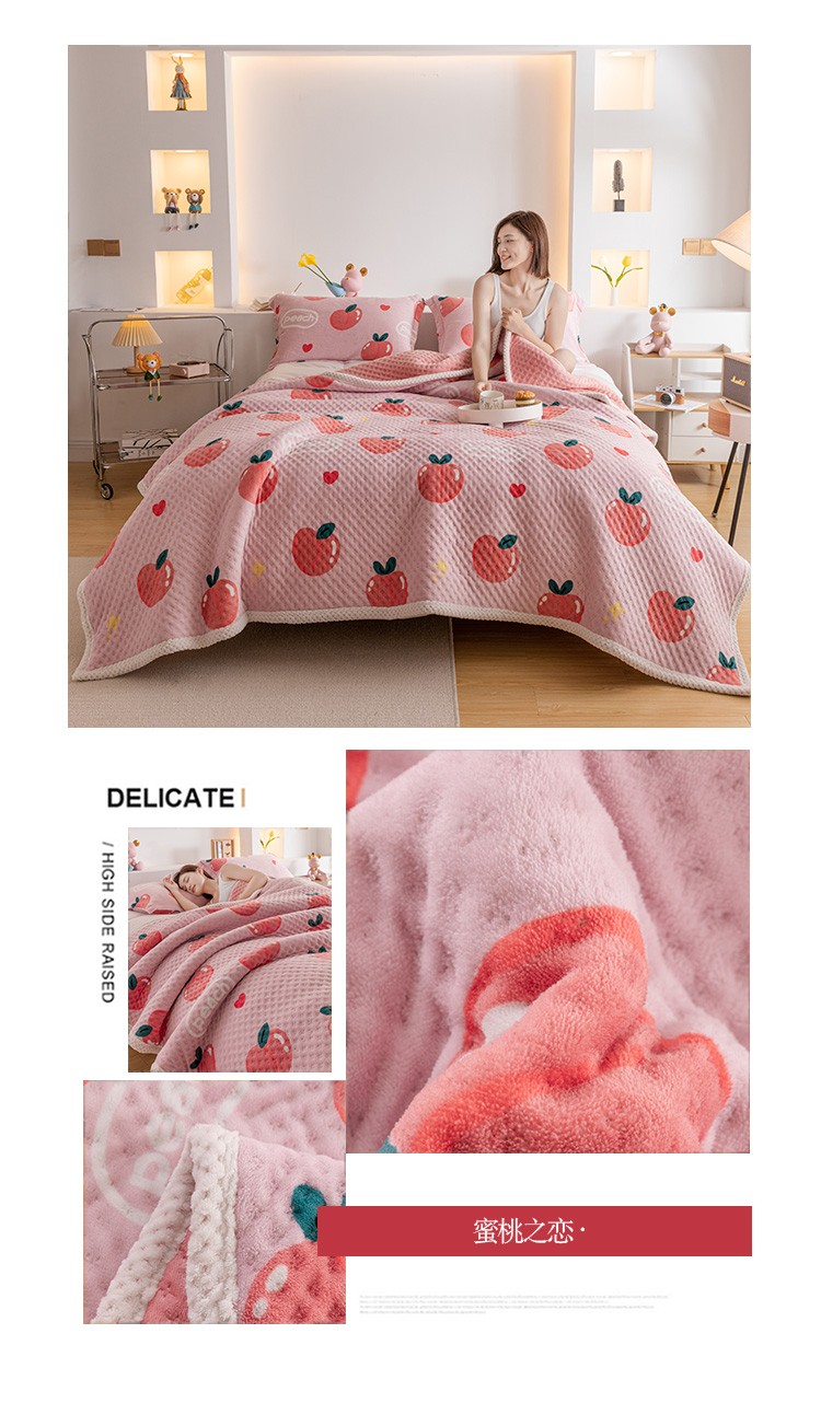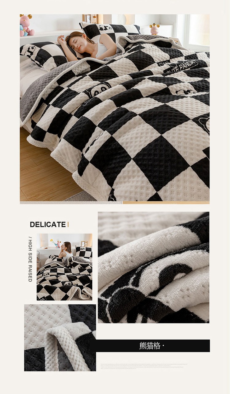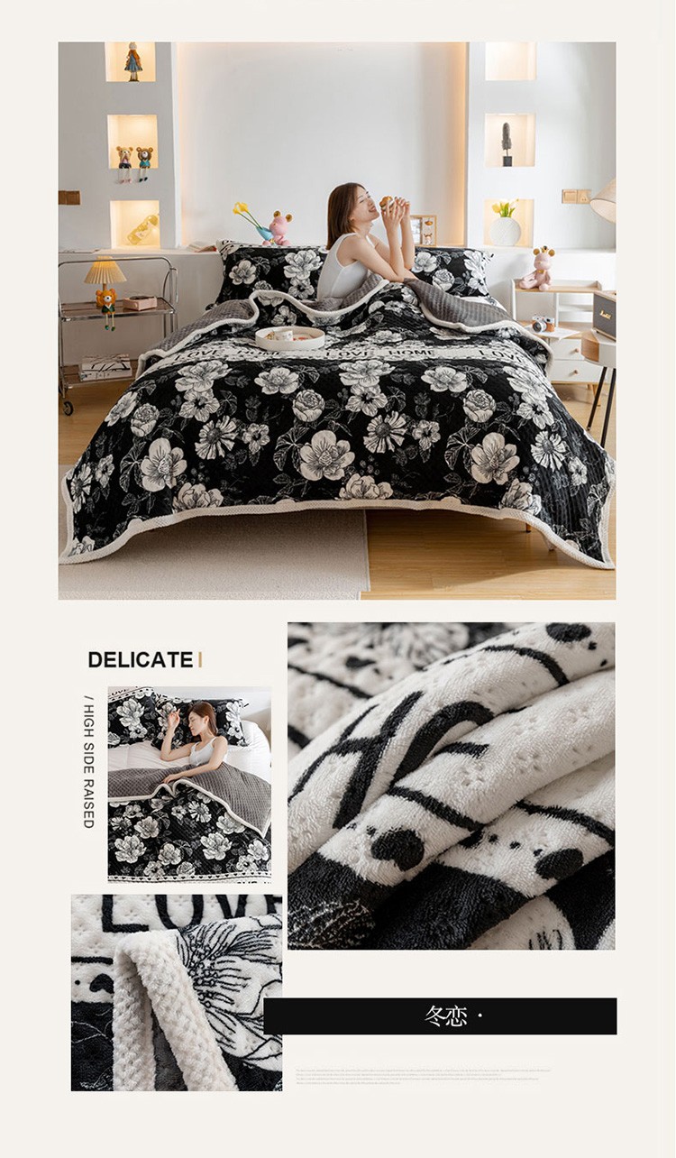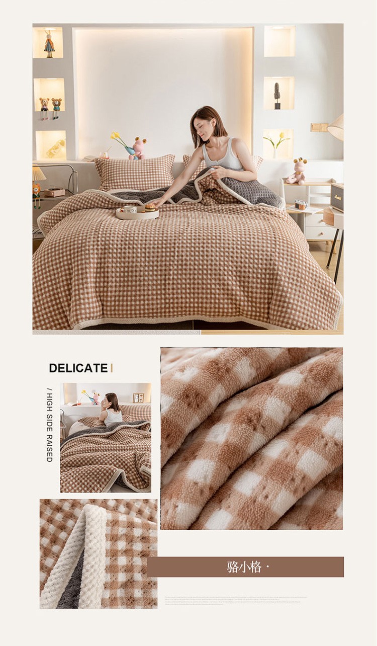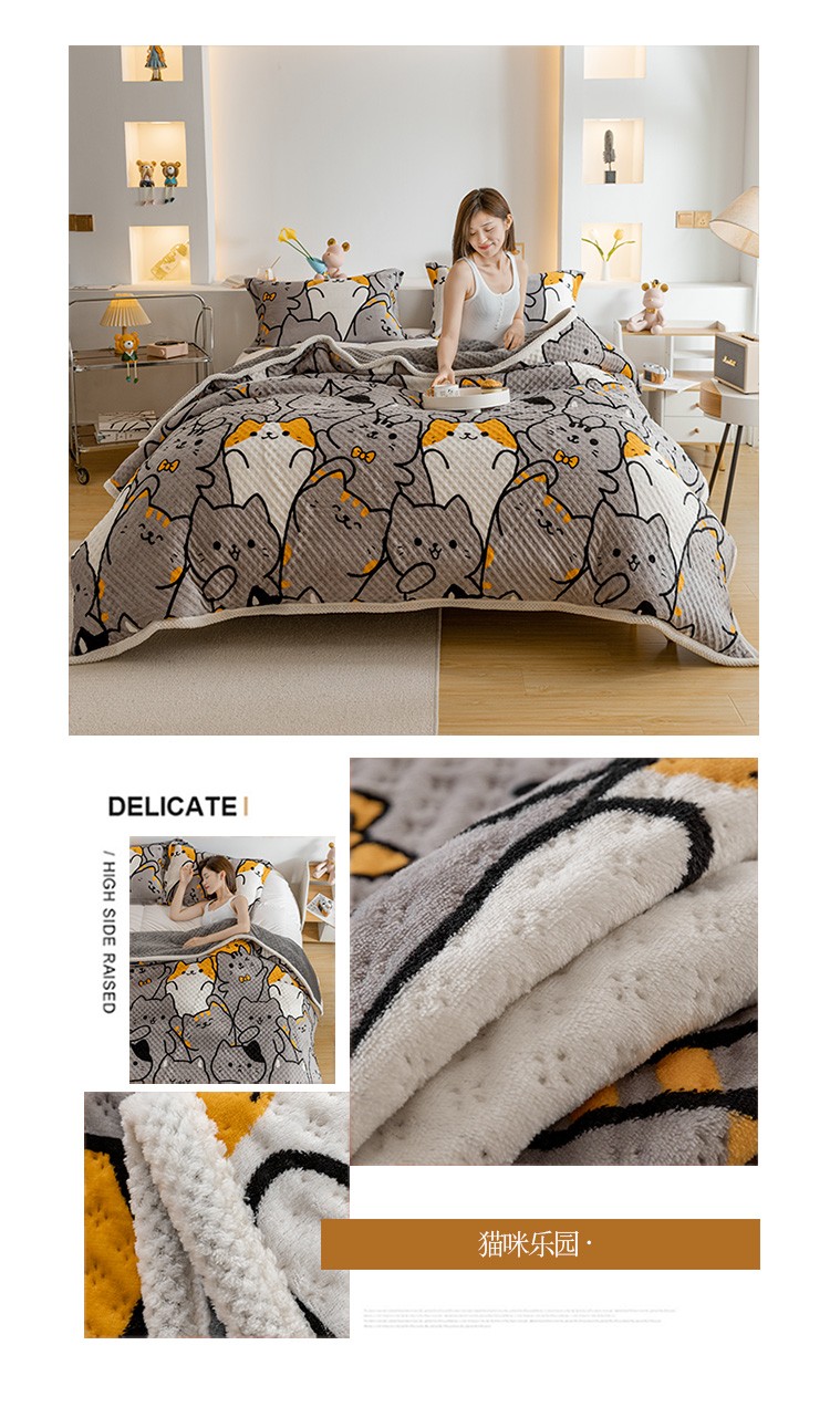 (总)宅部落2022法莱绒牛奶绒毯三层夹棉毯多功能毛毯绗缝毯