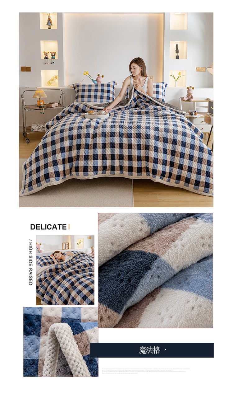 商品名称:(总)宅部落2022法莱绒牛奶绒毯三层夹棉毯多功能毛毯绗缝毯