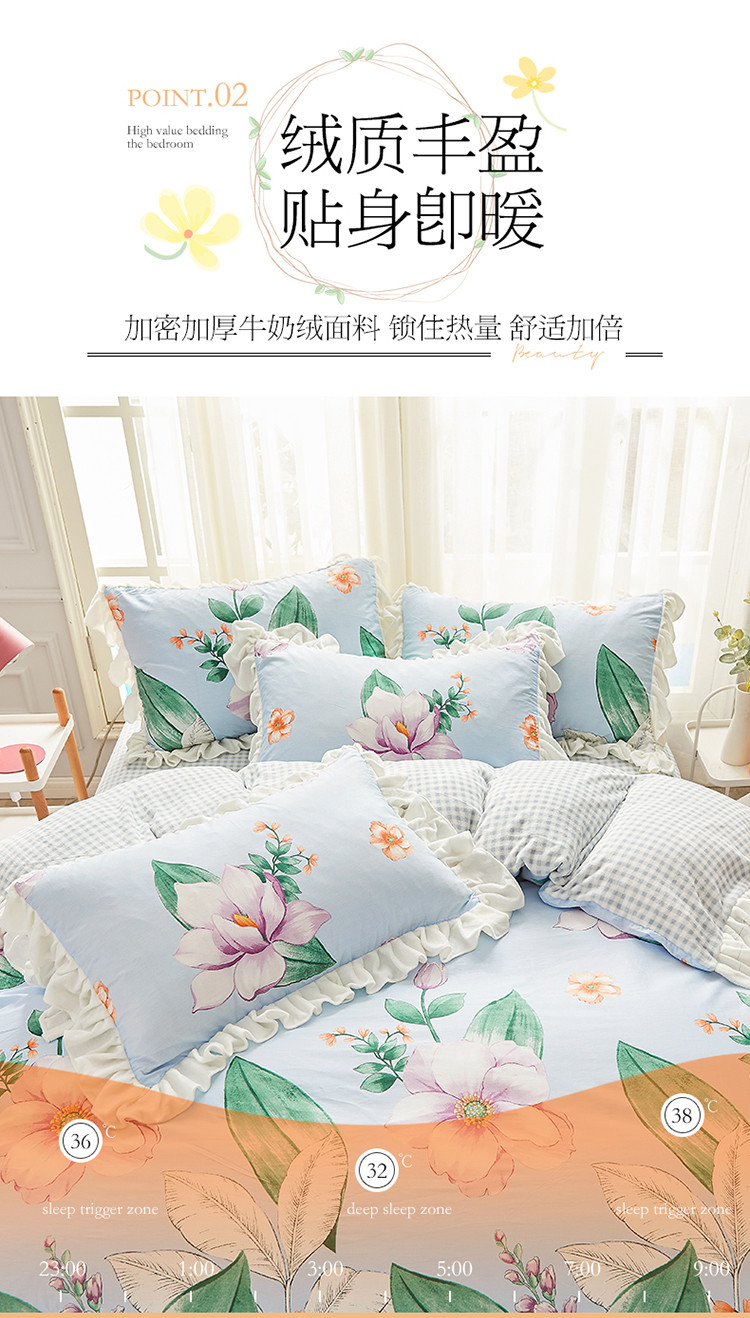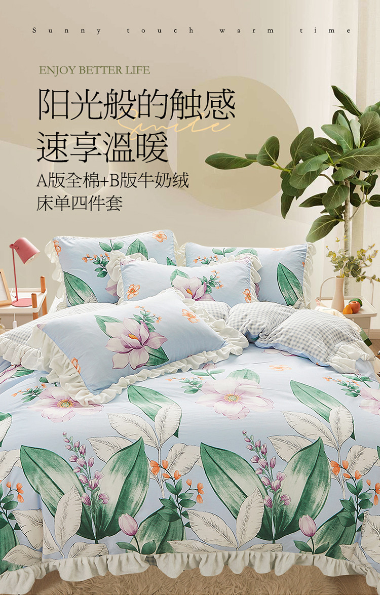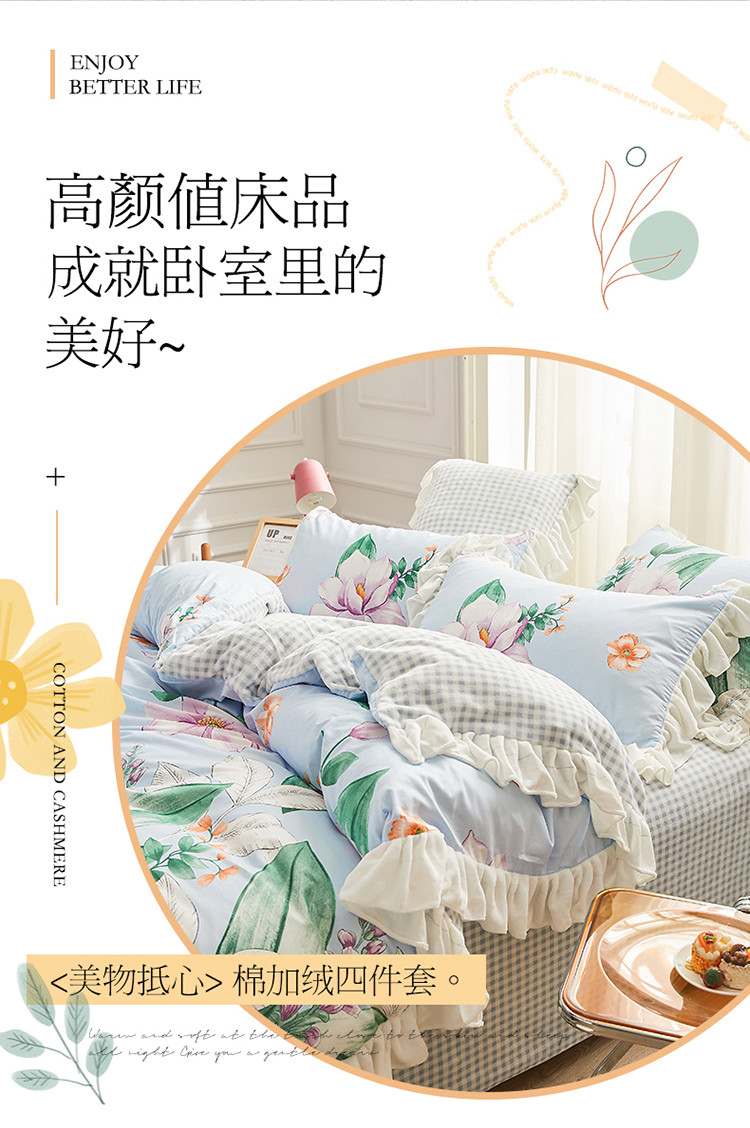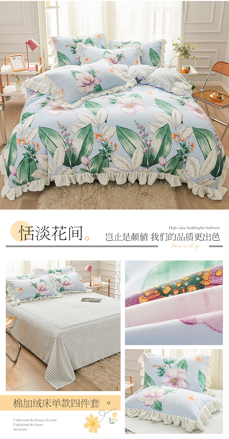 宜凡家纺 2021新款棉加绒印花床单四件套 恬淡花间