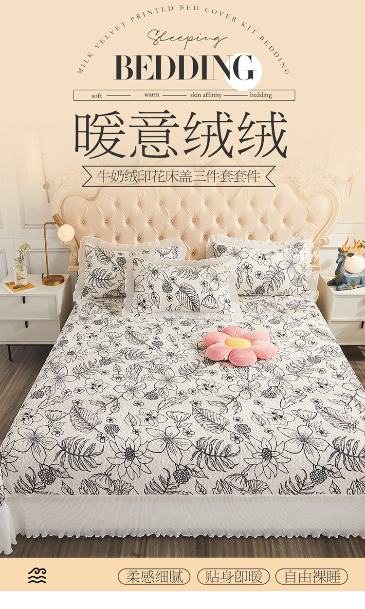 宜凡 2021新款牛奶绒小清新三件套 春归