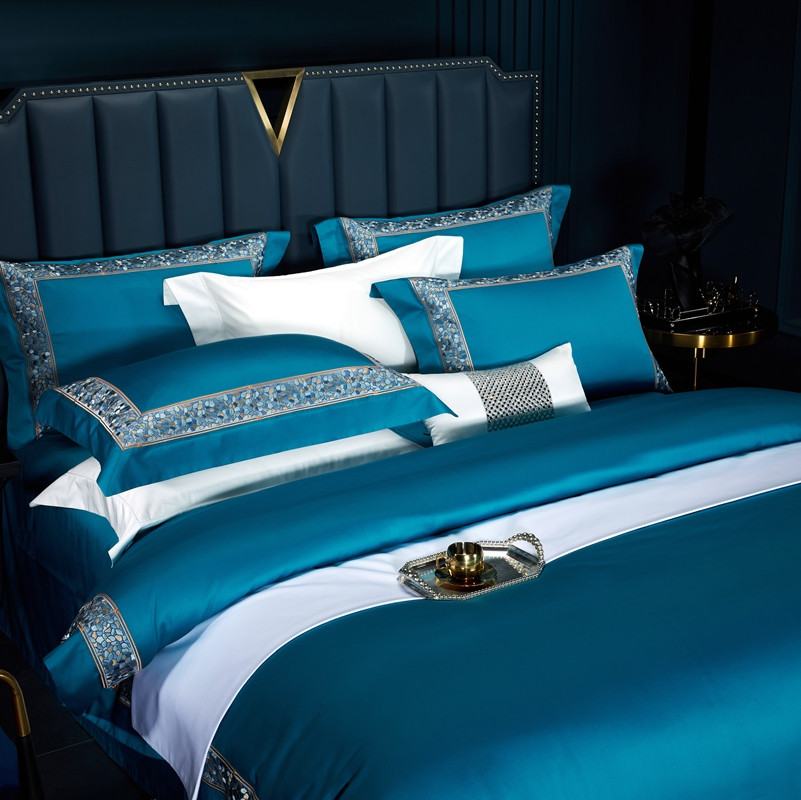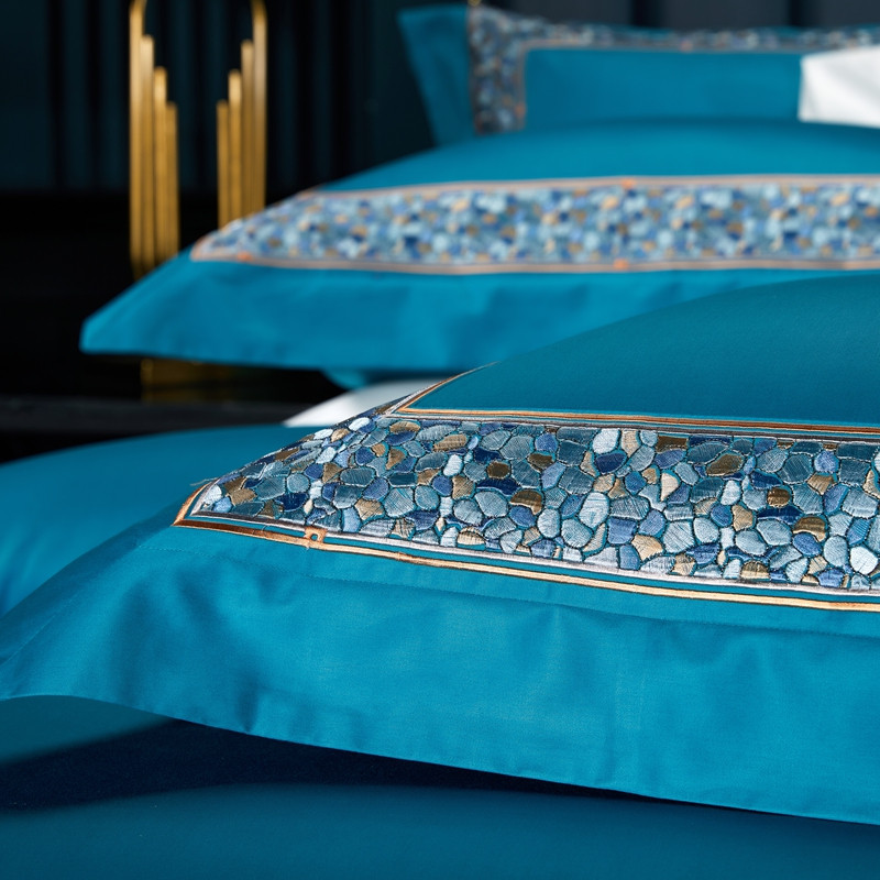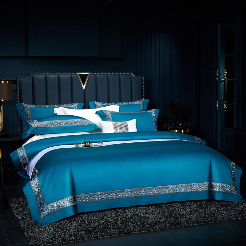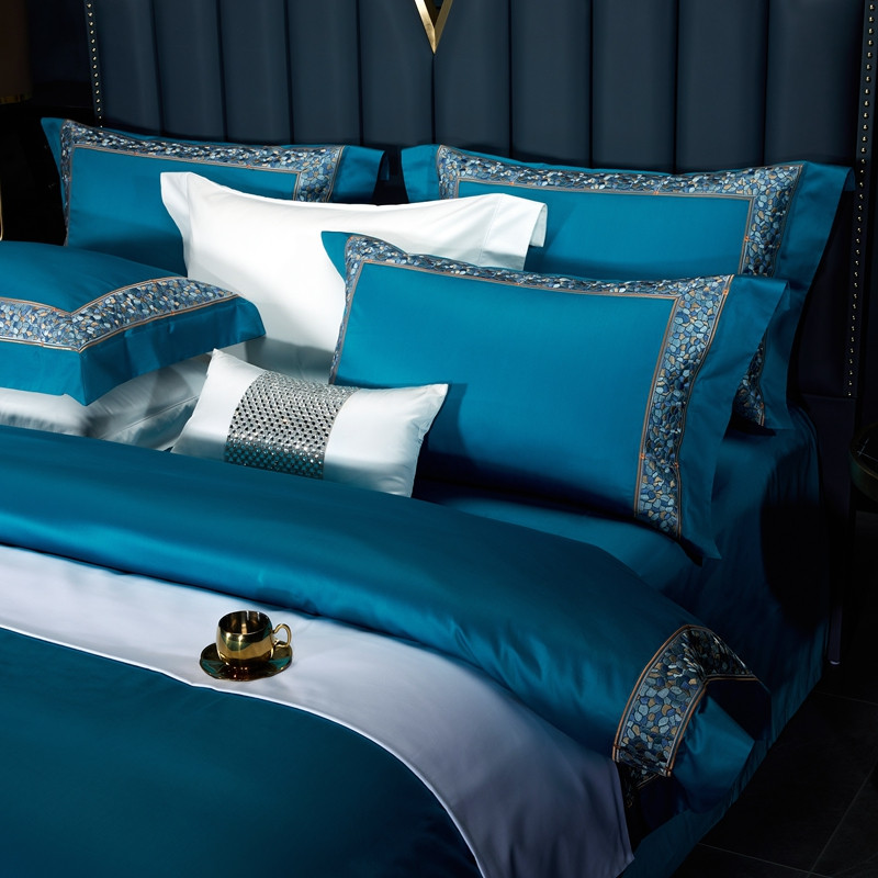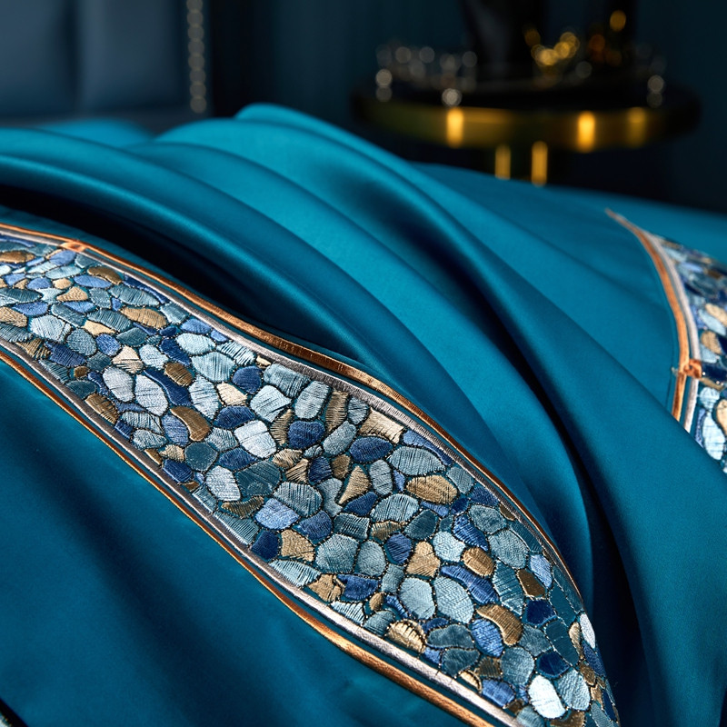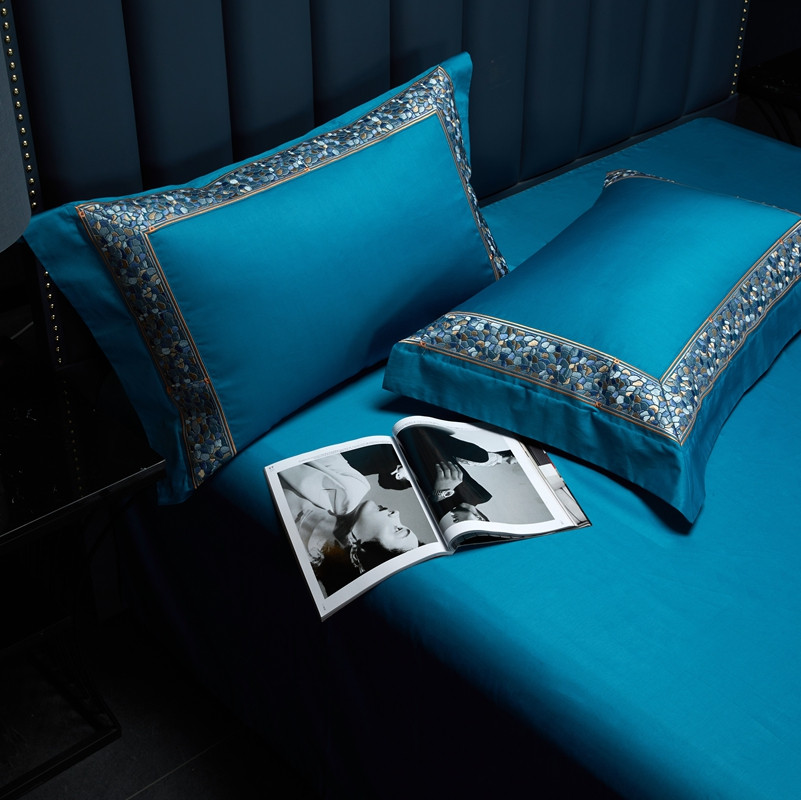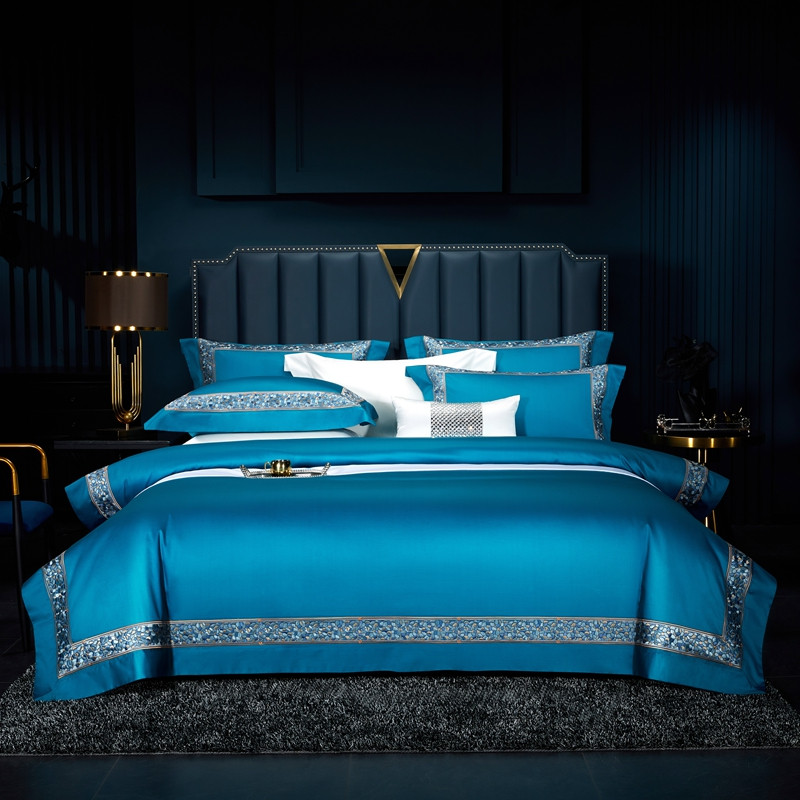 缔缦家纺 2022新款100s澳棉刺绣系列四件套-布瑞琪 孔雀蓝