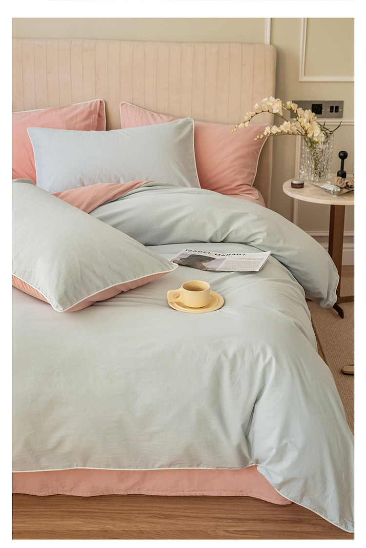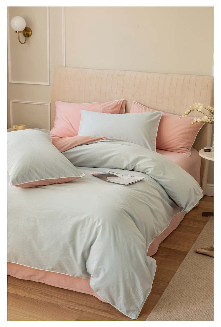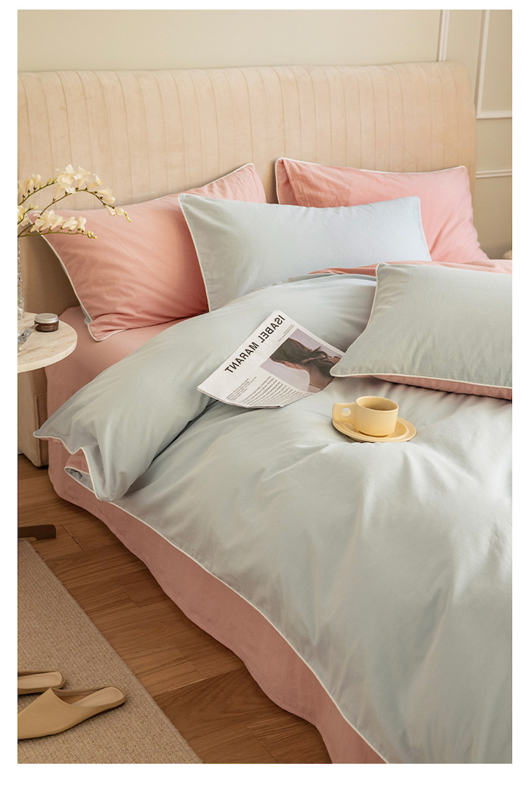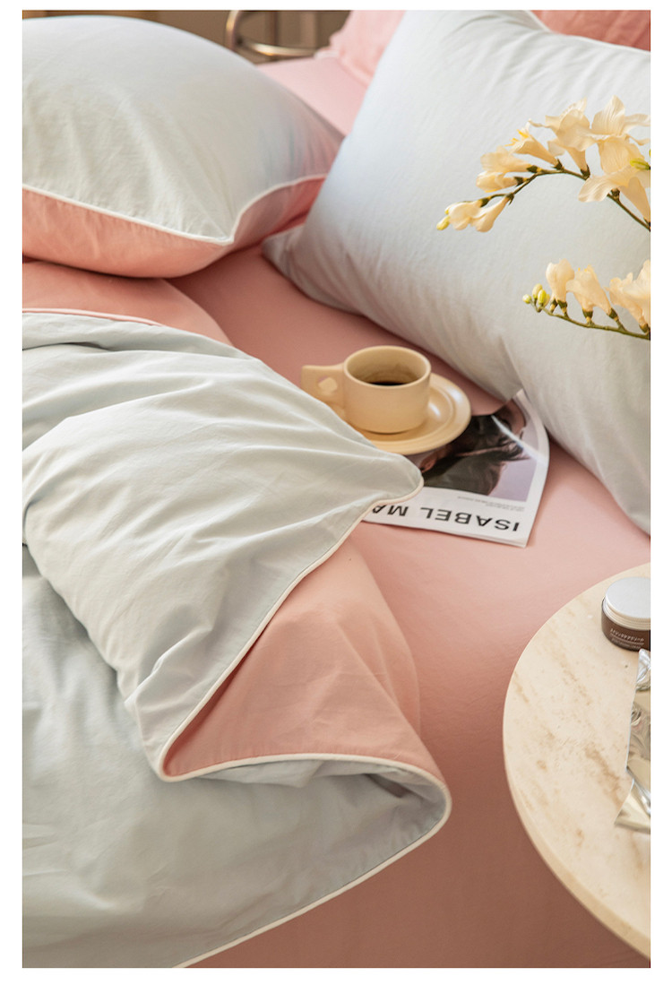 (总)万盛家纺 2025新款全棉水洗棉拼色四件套,宾利蓝拼淡咖,灰拼浅咖,抹茶绿拼淡咖,浅咖拼软桃,浅紫拼灰,软桃拼冰心,烟粉拼灰,夜色灰拼军绿