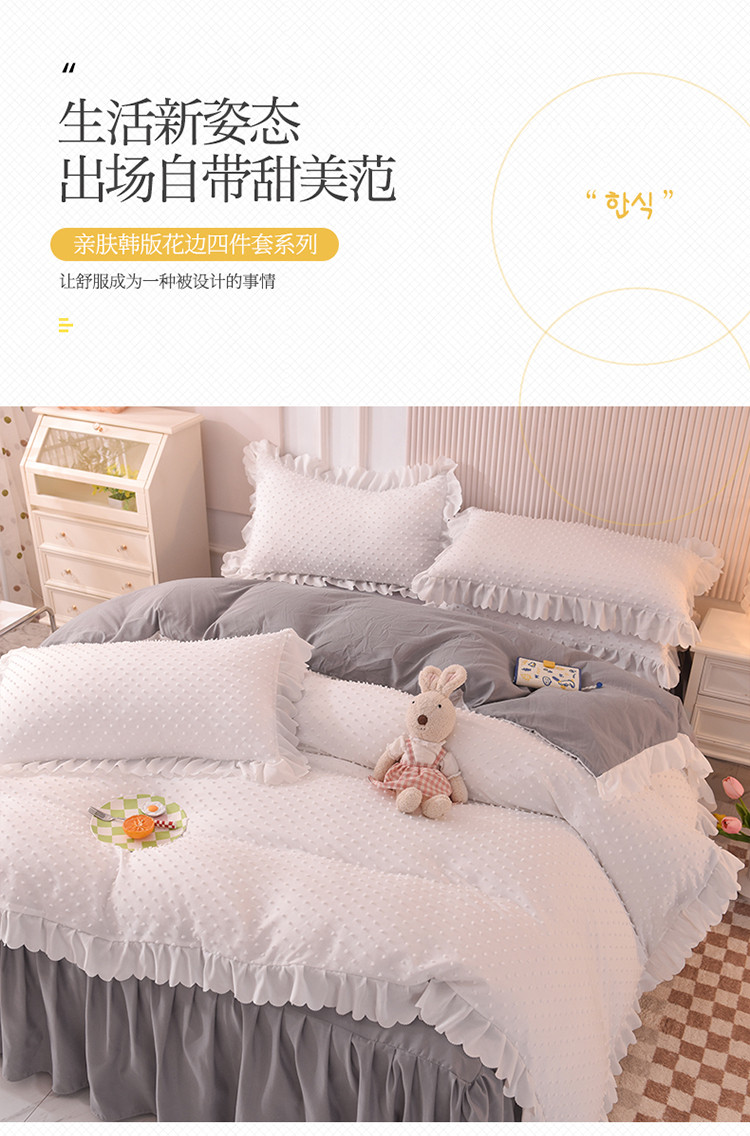 当前位置: 91家纺网 > 商品网购 > 床品套件 > 四件套 > 磨毛活性四件套 > 梦之岛 2022新款豆豆公主韩版磨毛四件套 豆豆公主-白